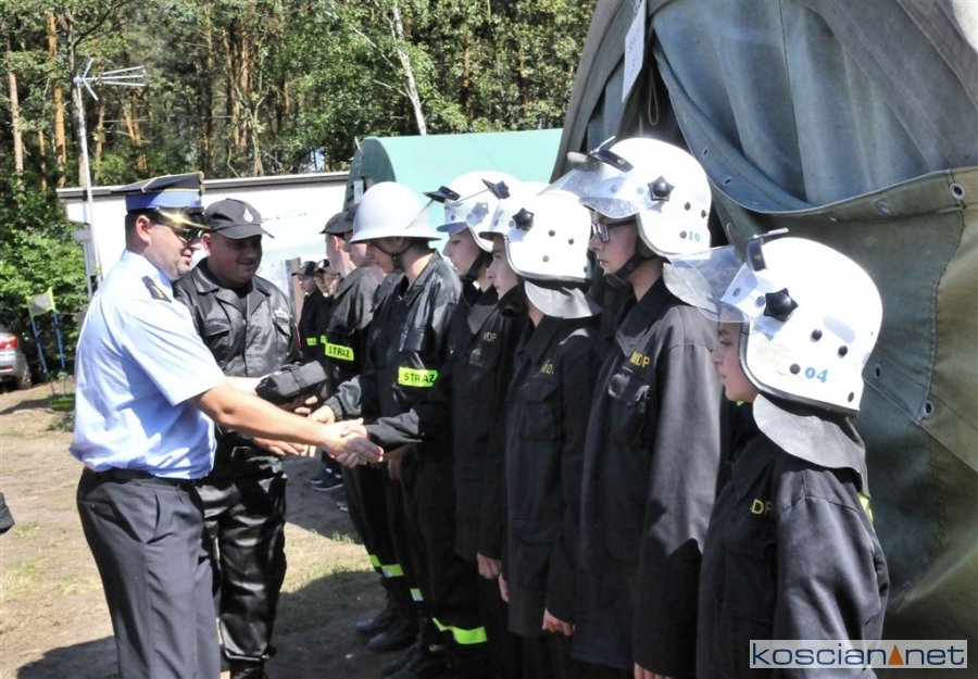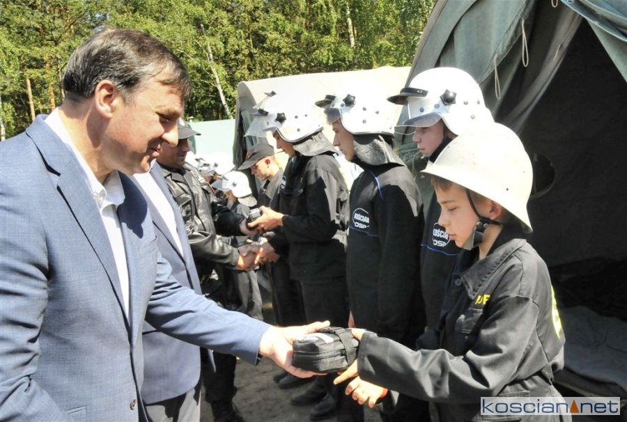 Co roku szkolącą się na Dębcu młodzież odwiedzają kościańscy samorządowcy i zawodowi strażacy. Po pokazie zdobytych umiejętności upominki młodzieży wręczali wczoraj: burmistrz Michał Jurga, przewodniczący miejskiej rady Piotr Ruszkiewicz i komendant powiatowy PSP Robert Natunewicz . Dziesięciodniowy obóz zakończy się w niedzielę.