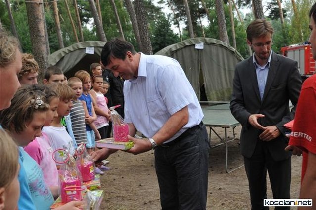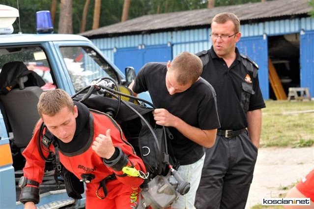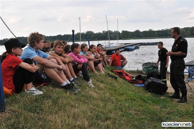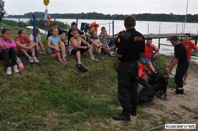 Fotoreporter odwiedził obóz w dniu, w którym strażaków odwiedził wiceburmistrz Kościana Maciej Kasprzak oraz przewodniczący rady miejskiej Piotr Ruszkiewicz z zastępcą - Maciejem Zielonką. Tego też dnia strażacy z PSP Kościan przygotowali dla obozowiczów pokaz pracy płetwonurków.