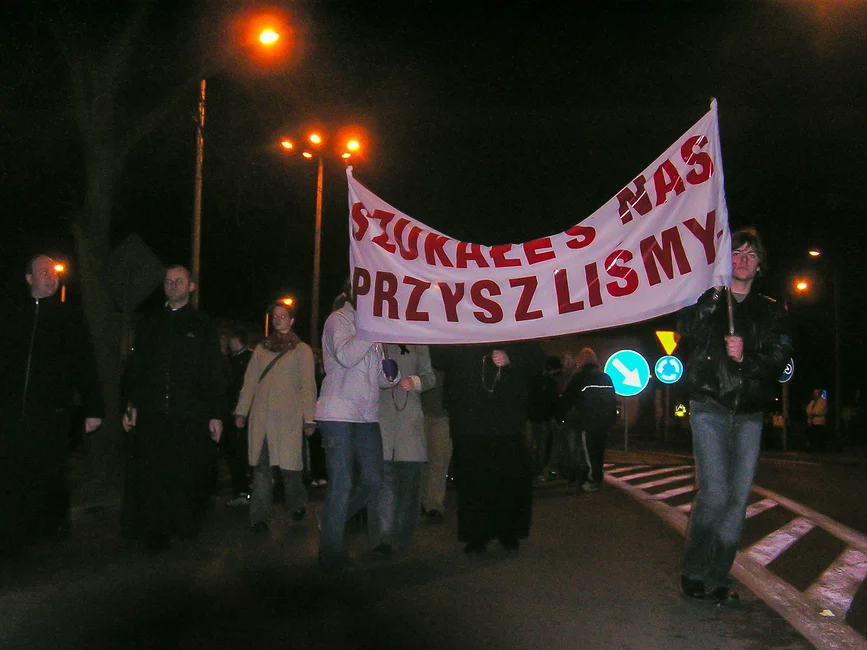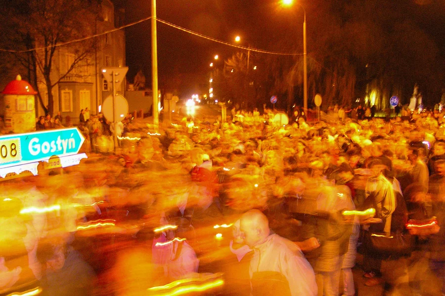 W białym marszu wdzięczności za blisko 27-letni pontyfikat Ojca Świętego kościaniacy przeszli do fary. Przechodząc Placem Żołnierza (dziś Rondo Solidarności), Alejami Kościuszki, ulicami ks. Stefana Wyszyńskiego i Kościelną odmawiano różaniec. Na przedzie młodzież z niosła transparent napisem ,,Szukałem was – przyszliście’’. Tłum był tak wielki, że wierni nie mieścili się wewnątrz kościoła.