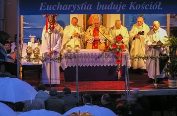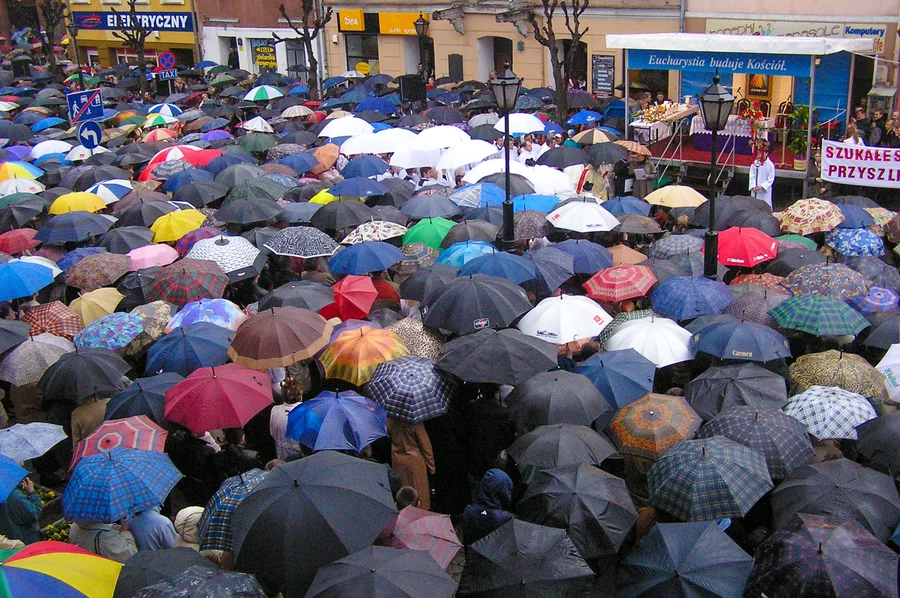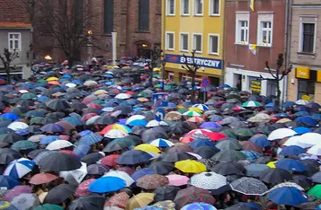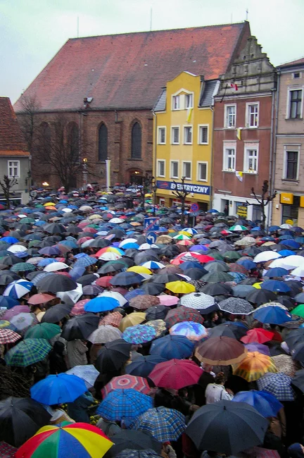 Mszą świętą odprawioną w piątek, 8 kwietnia, na kościańskim Rynku mieszkańcy Ziemi Kościańskiej żegnali Jana Pawła II. Mimo ulewnego deszczu i przenikliwego zimna w nabożeństwie uczestniczyły tysiące wiernych. Mszy przewodniczył ksiądz Czesław Bartoszewski.