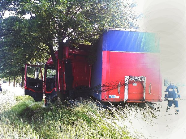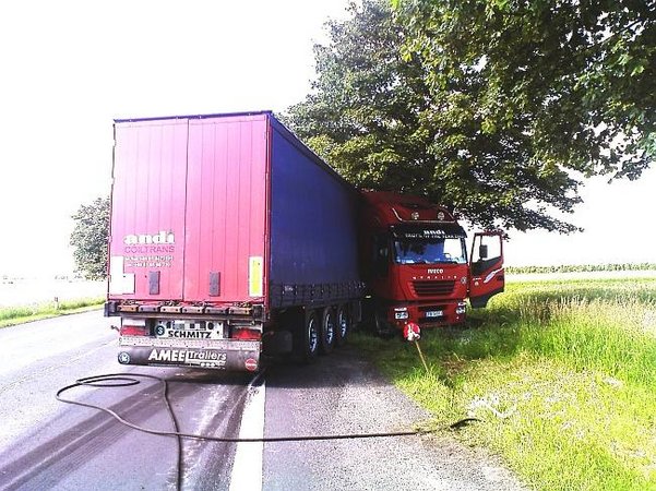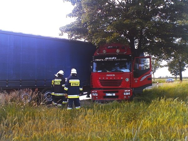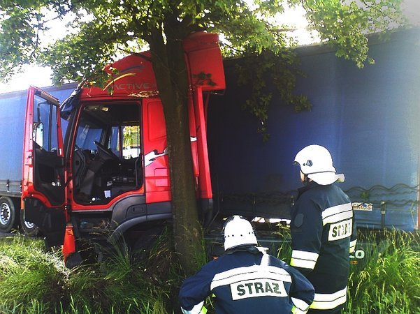 Dziś w nocy (19 czerwca) pomiędzy Poninem i Czaczem tir uderzył w drzewo i częściowo zablokował przejazd na krajowej piątce. Utrudnienia na drodze mogą potrwać do południa, tyle bowiem potrwa przeładunek towaru z uszkodzonego pojazdu.Z kolei przedwczoraj (17 czerwca) w godzinach popołudniowych inny tir uderzył w drzewo na odcinku ,,piątki’’ pomiędzy Kawczynem i Jarogniewicami (foto)