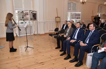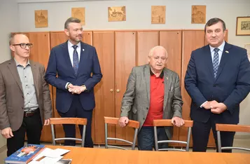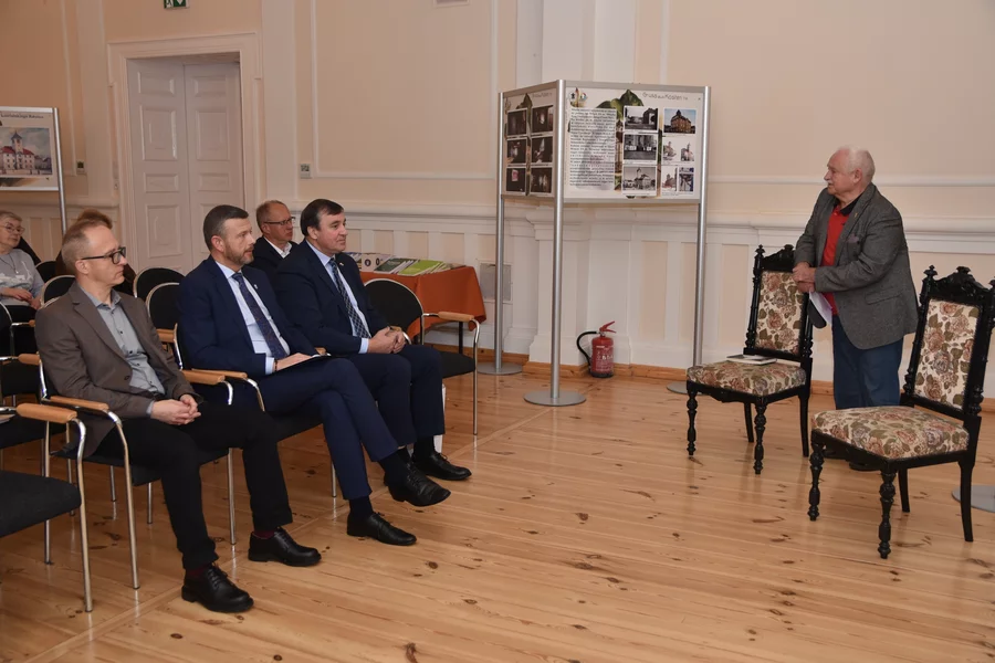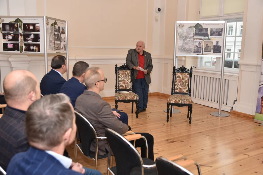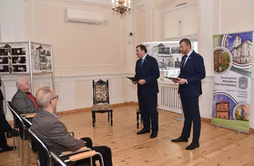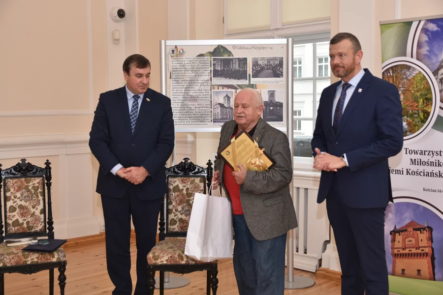 Gospodarz miejsca, burmistrz Piotr Ruszkiewicz, wraz z przewodniczącym rady miejskiej Dawidem Olejniczakiem przekazał Towarzystwu pamiątkowy grawerton z okazji powrotu TMZK do Ratusza.