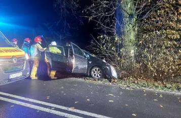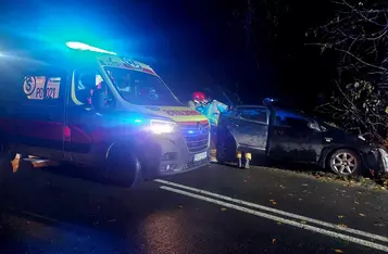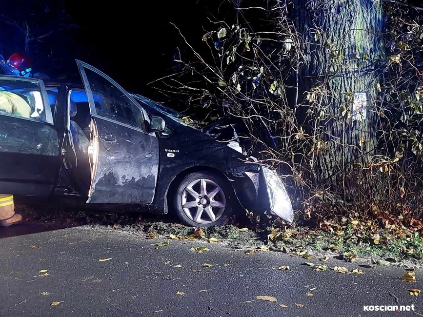 Pomiędzy Starym Gołębinem a Turwią toyota uderzyła w drzewo. Dwie osoby przewieziono do szpitala na badania.