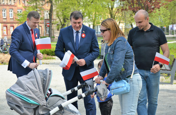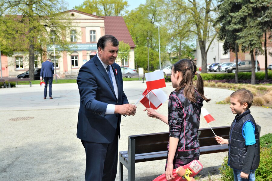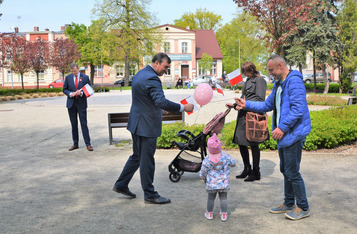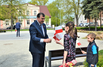 Zgodnie z wieloletnią tradycją, w Dzień Flagi Rzeczypospolitej Polskiej, kościańscy samorządowcy rozdają przechodniom chorągiewki w barwach narodowych. W tym roku chorągiewki na Placu Wolności wręczali: burmistrz Piotr Ruszkiewicz i przewodniczący miejskiej rady Dawid Olejniczak.