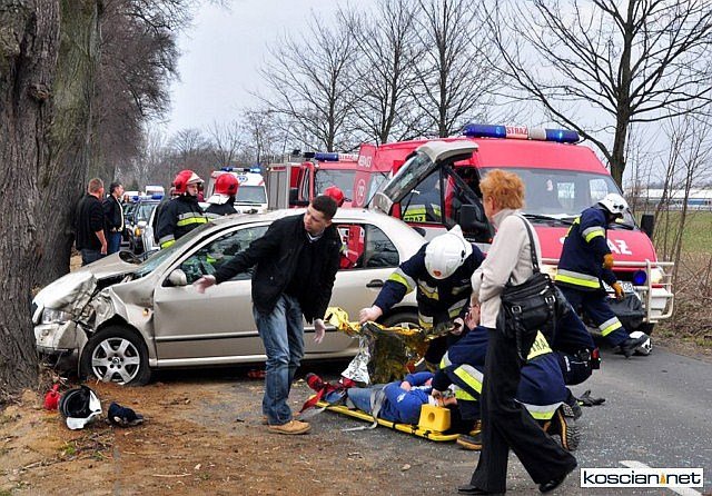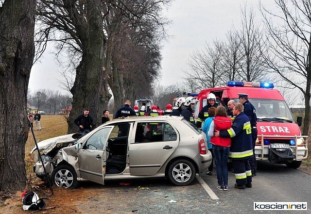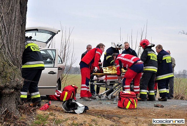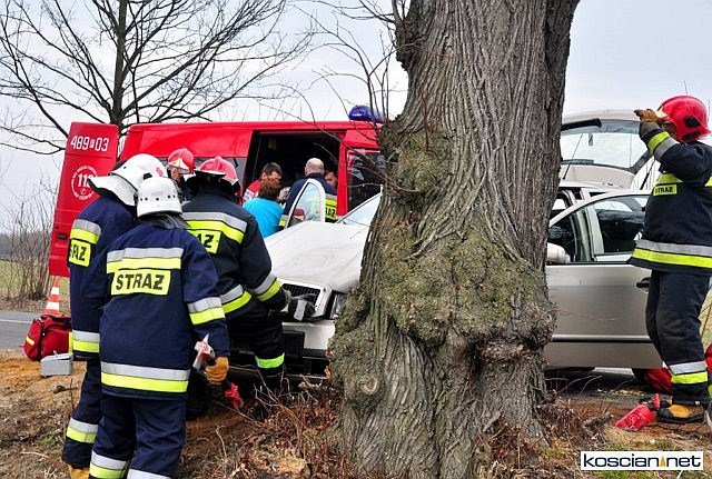 Na prostym odcinku drogi Czempiń - Borowo skoda fabia uderzyła w przydrożne drzewo. Ranne dziecko przetransportowano śmigłowcem Lotniczego Pogotowia Ratunkowego do szpitala w Poznaniu. Dwie kolejne osoby odwieziono do szpitala w Kościanie.