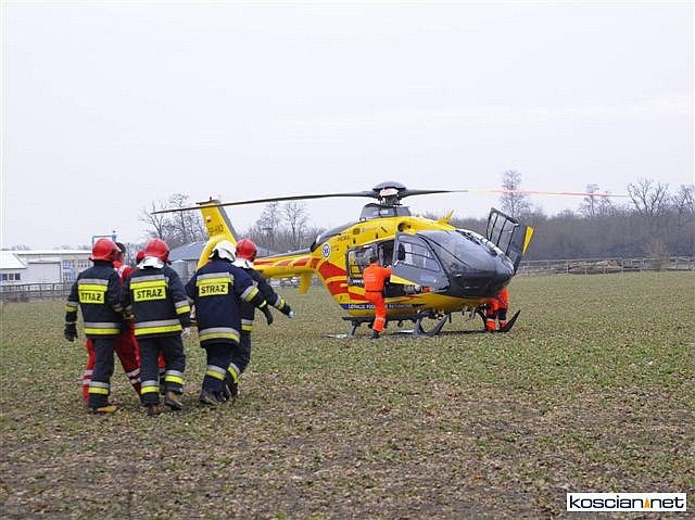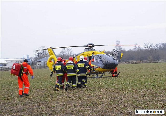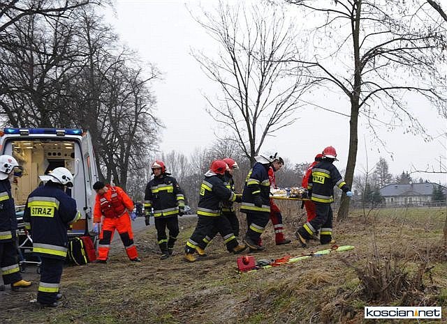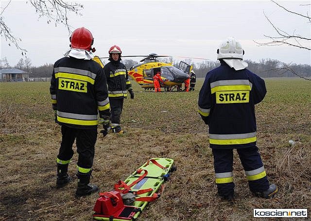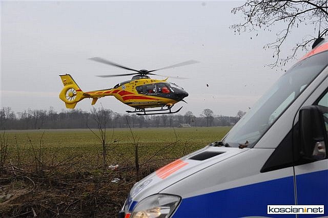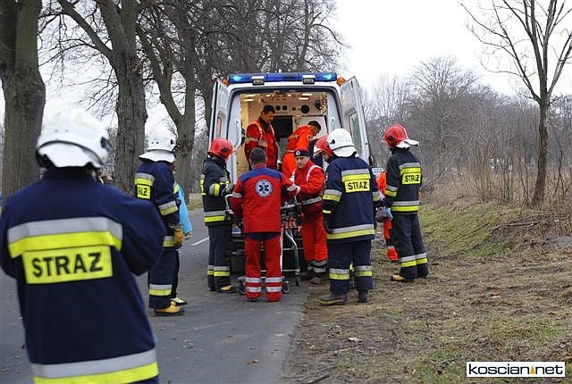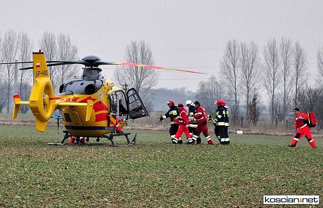 Przybyły na miejsce lekarz pogotowia zdecydował o wezwaniu śmigłowca Lotniczego Pogotowia Ratunkowego, które przetransportowało ośmioletniego chłopca z urazem głowy do szpitala w Poznaniu. Karetkami do szpitala w Kościanie odwieziono ranną kobietę i jedenastoletnią dziewczynkę. Wszyscy uczestnicy wypadku byli przytomni i utrzymywali kontakt z ratownikami.