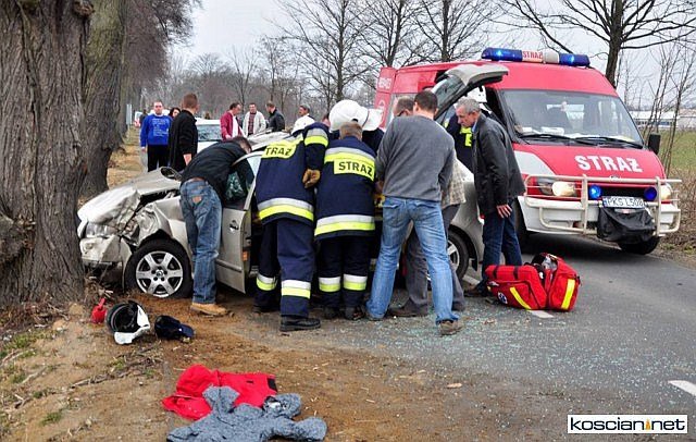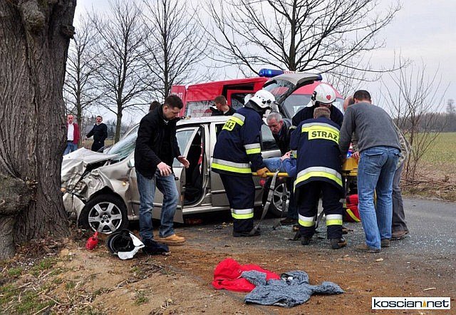 Do wypadku doszło w niedzielę, 13 marca, około godziny 16.30. Autem podróżowała mieszkanka Czempinia z dwójką dzieci. Na prostym odcinku auto zjechało z drogi i uderzyło w drzewo. Pierwszy na miejsce zdarzenia dotarł zastęp OSP Czempiń, który udzielił poszkodowanym kwalifikowanej pierwszej pomocy.