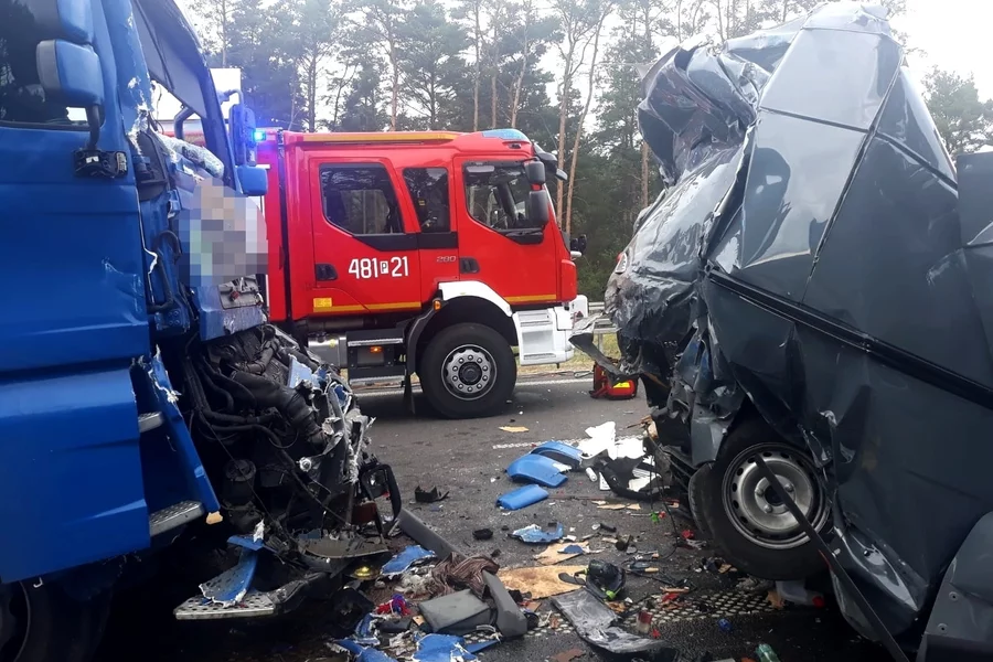 Jeden z busów został zmiażdżony pomiędzy dwoma ciężarówkami. Strażacy przy pomocy sprzętu hydraulicznego uwolnili kierowcę i przekazali go zespołowi Lotniczego Pogotowia Ratunkowego. Mężczyznę w ciężkim stanie przetransportowano do szpitala w Poznaniu. Niestety, dziś rano dotarła do nas wiadomość, że lekarzom nie udało się uratować jego życia.