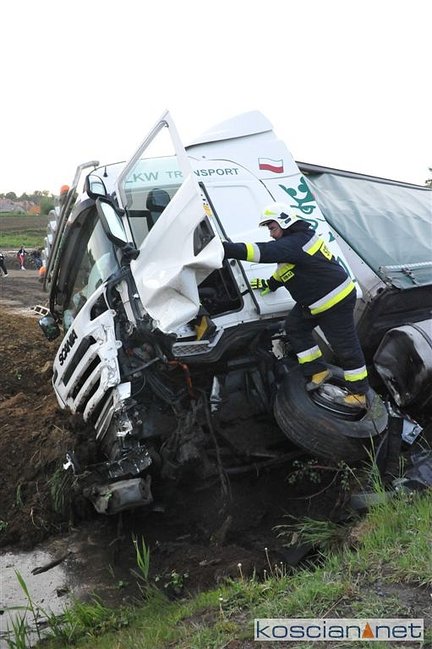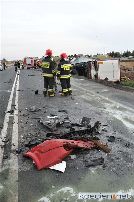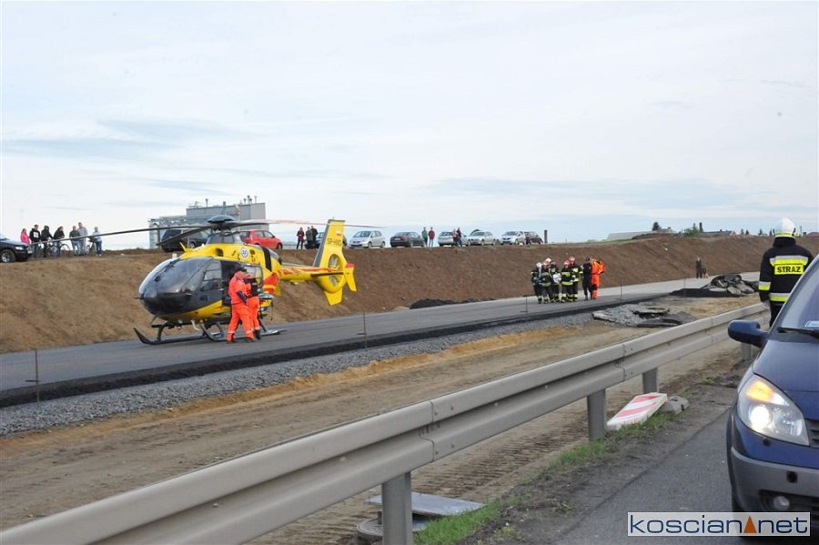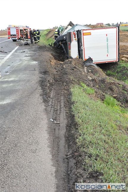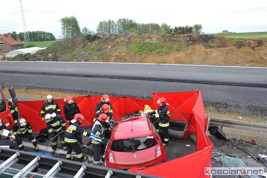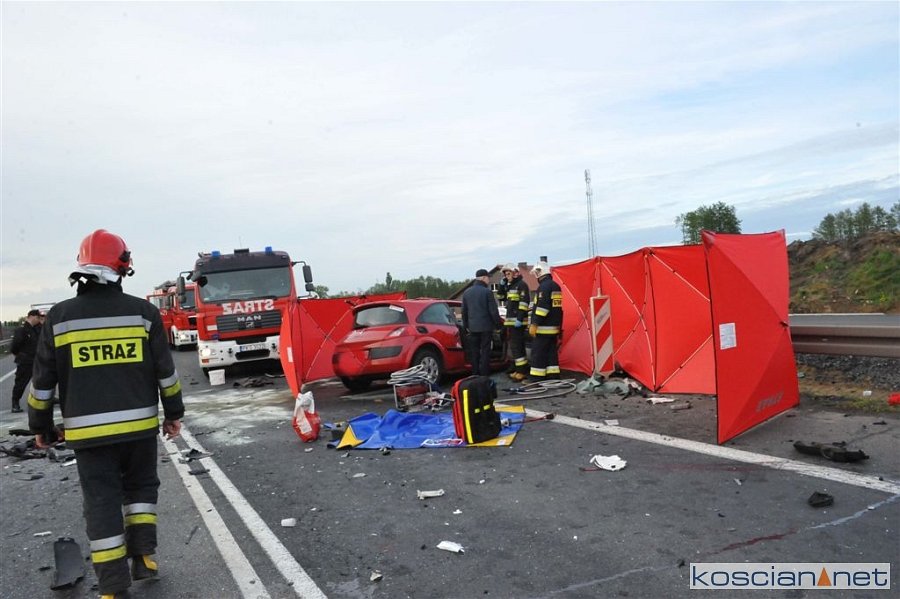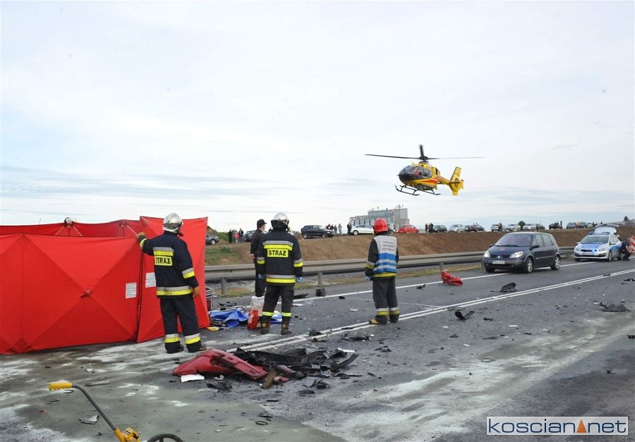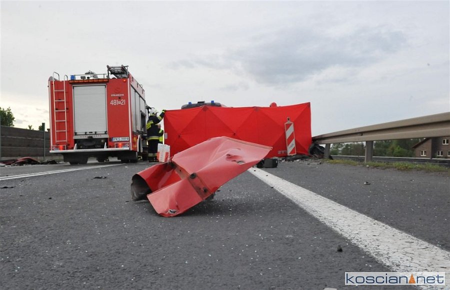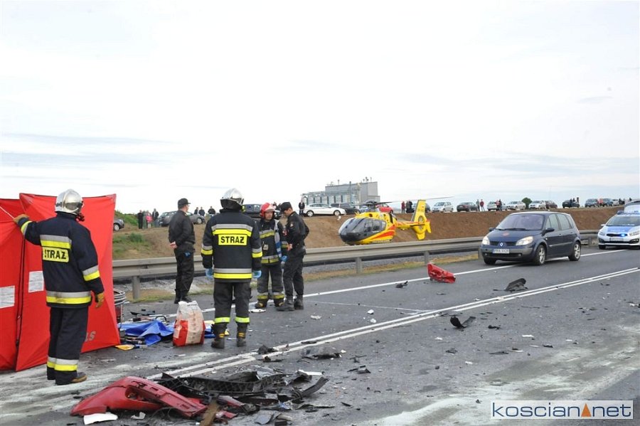 Do tragicznego wypadku doszło w niedzielę, 12 maja, po godzinie 18. na obwodnicy Śmigla. Jak wynika ze wstępnych ustaleń, jadący od strony Leszna 28-letni mieszkaniec Kościana zjechał nagle na przeciwny pas ruchu doprowadzając do zderzenia z ciągnikiem siodłowym. W wypadku śmierć poniósł kierowca renault megane. Jadąca z nim 28-letnia mieszkanka Kościana została przetransportowana do szpitala śmigłowcem Lotniczego Pogotowia Ratunkowego. Kierowcy ciężarówki nic się nie stało. Okoliczności i przebieg zdarzenia ma wyjaśnić policyjne dochodzenie.
