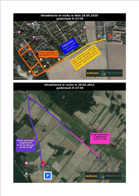 W związku z organizacją zawodów Triathlonowych w Nowym Dębcu w sobotę wystąpią utrudnienia w ruchu na drodze dojazdowej do Nowego Dębca, Osieka i Januszewa oraz na drogach na terenie Nowego Dębca Letnisko.