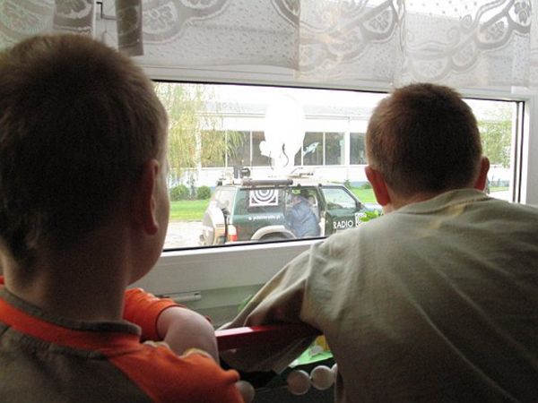 - Telewizja przyjechała! - wyskoczyły z sali dzieciaki drąc się na całe gardło. W tym czasie na antenie Trójki uspokajano kościaniaków, którzy wyjechali do pracy z miasta, że gdy wrócą, reporterzy radia w mieście jeszcze będą gościć. Chwilę wcześniej zastanawiano się czy Kościan to miasto, czy miasteczko i stanęło na tym, że małe miasto.