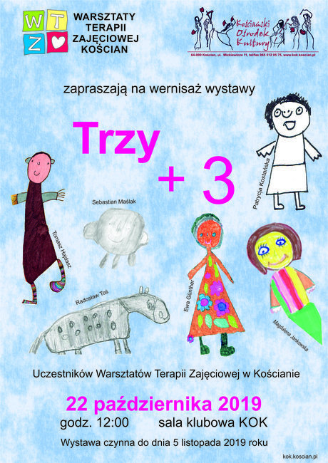 Wernisaż wystawy zatytułowanej "Trzy + 3" odbył się we wtorek, 22 października. Prace uczestników kościańskich Wartsztatów można oglądać do 5 listopada. Polecamy!