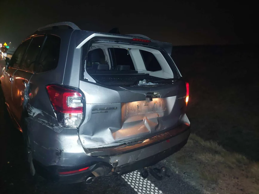 Do trzech następujących po sobie kolizji doszło w czwartek, 11 grudnia, około godziny 17:15 na drodze dojazdowej do węzła Kościan Północ. Zaczęło się od utraty panowania nad samochodem przez 35-latkę kierująca renaultem. Samochód zjechał do przydrożnego rowu. W subaru, które zatrzymało się ponieważ kierująca nim 62-latka z Kościana chciała udzielić pomocy kierowcy renaulta, uderzyło mitsubishi prowadzone przez 24-latka z Kościana. Chwilę później w mitsubishi i ciężarową scanię wjechał ciągnik siodłowy volvo, kierowany przez 48-letniego obywatela Uzbekistanu.