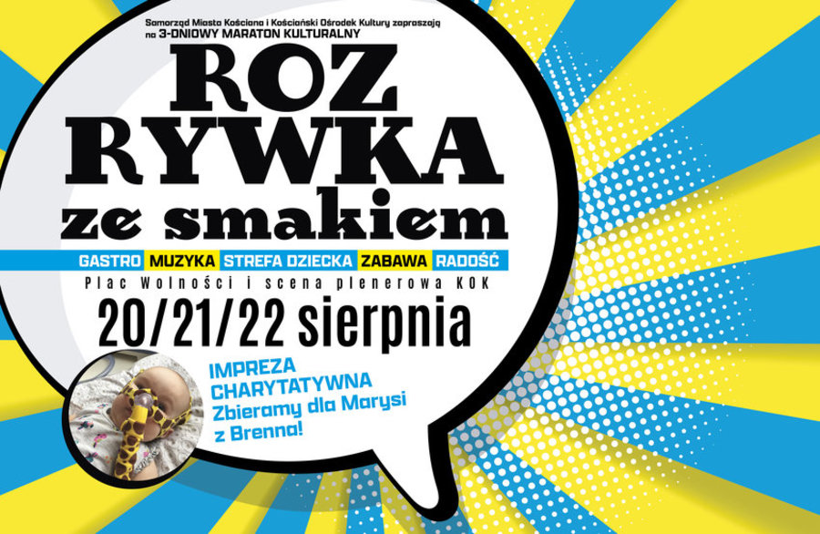 Cykl różnorodnych imprez odbywać się będzie na Placu Wolności i plenerowej scenie Kościańskiego Ośrodka Kultury. Na trzy dni zaparkują tu food trucki z różnorodnym jedzeniem. W piątek strefa gastronomiczna będzie czynna od godziny 15., a w sobotę i niedzielę od godziny 12.