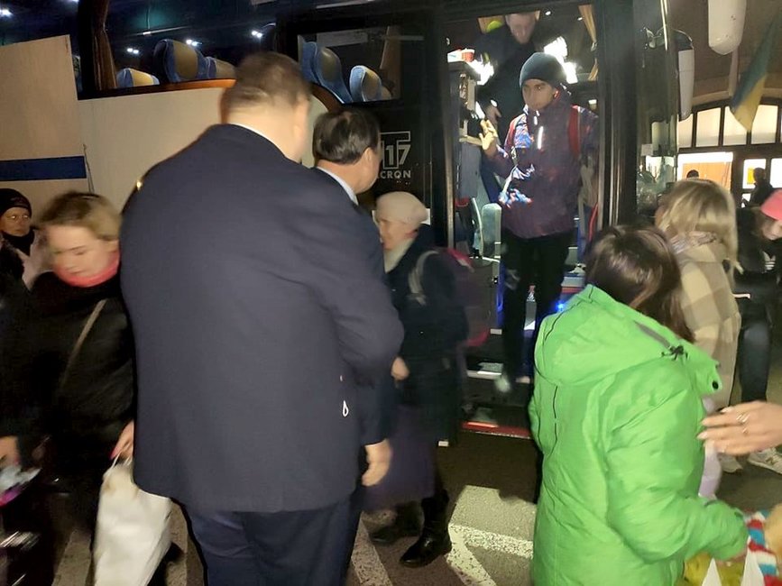 Autokar dotarł do Kościana w nocy z środy na czwartek (2/3 marca). W strażnicy OSP na uchodźców czekali organizatorzy akcji, osoby oferujące mieszkania, wolontariusze, tłumacze, pracownicy miejskich instytucji pomocowych i zarządzania kryzysowego, burmistrz Piotr Ruszkiewicz i i przewodniczący rady miejskiej Dawid Olejniczak.
