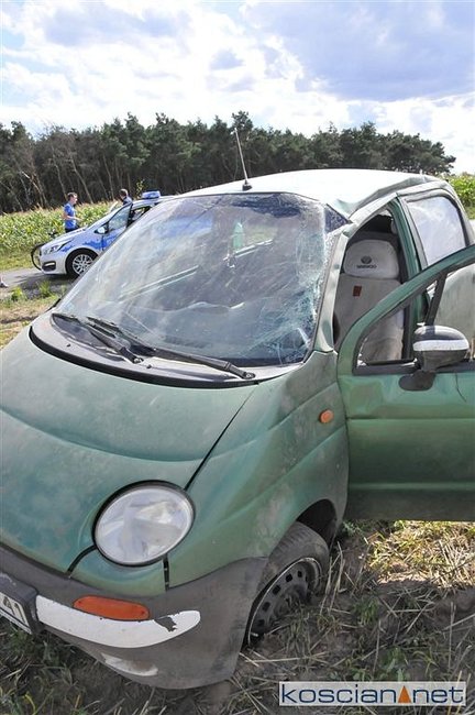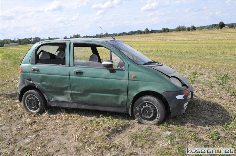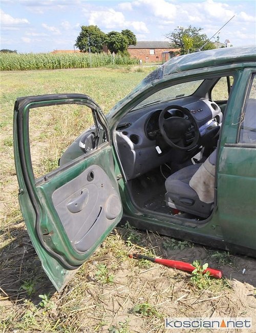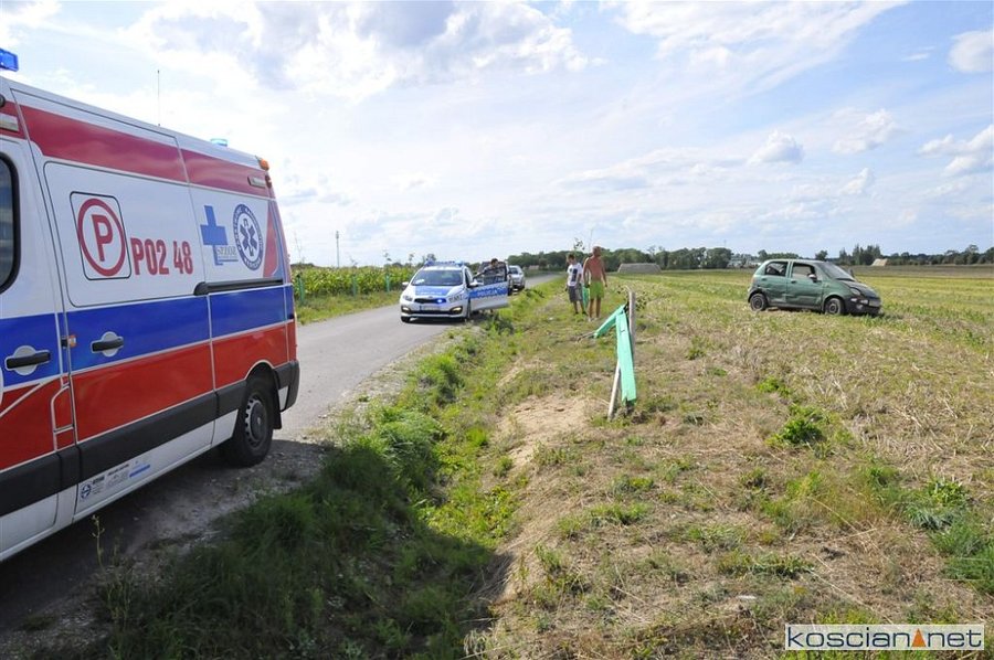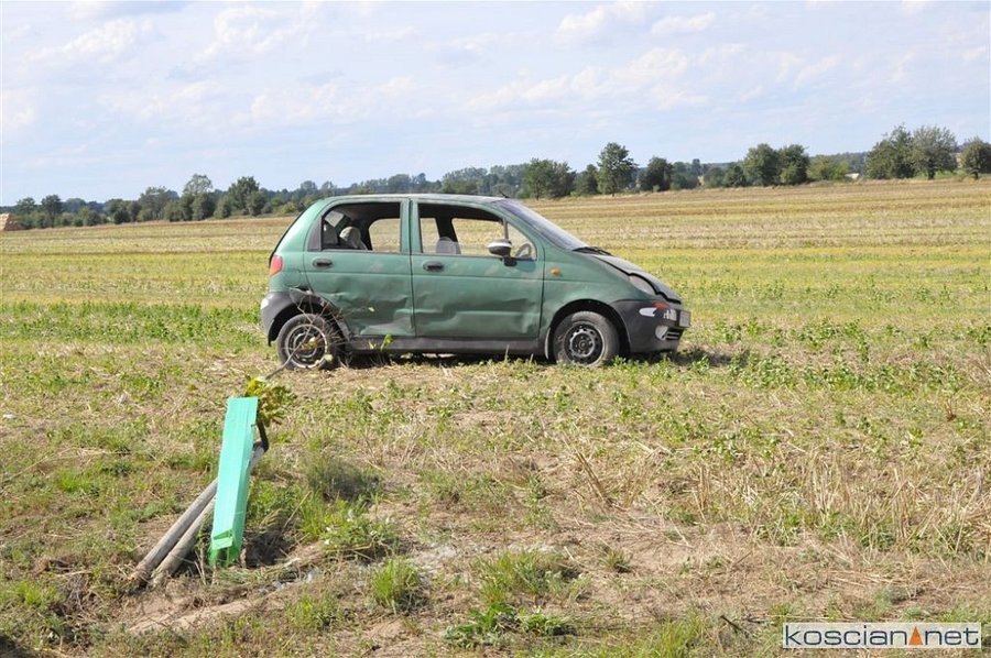 Do kolizji dwóch samochodów osobowych w Ignacewie doszło we wtorek, 13 sierpnia, około godziny 15. Kierujący renault megane, 20-letni mieszkaniec gminy Kościan, wyjeżdżając z polnej drogi nie ustąpił pierwszeństwa i uderzył w bok daewoo matiza. Kierujący matizem, 22-letni mieszkaniec gminy Kościan, stracił panowanie nad samochodem, który dachował na polu. Sprawca kolizji oddalił się z miejsca zdarzenia. Powrócił na nie rowerem po przybyciu straży pożarnej, policji i pogotowia. Choć w wyniku zderzenia nikt nie odniósł poważniejszych obrażeń, to sprawca stanie przed sądem za oddalenie się z miejsca kolizji.