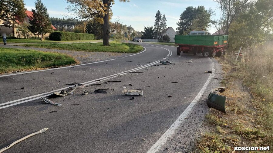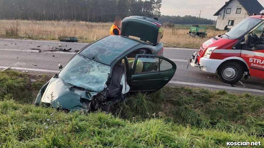 Do zdarzenia doszło w poniedziałek, 17 października, około godziny 15.55 w Podśmiglu. Jak wynika ze wstępnych ustaleń, kierujący renaultem, 75-latek z gminy Śmigiel, z niewyjaśnionej przyczyny zjechał na przeciwległy pas ruchu i uderzył w jadącego w przeciwnym kierunku ciężarowego mercedesa. Kierowcę samochodu osobowego przewieziono do szpitala na badania.