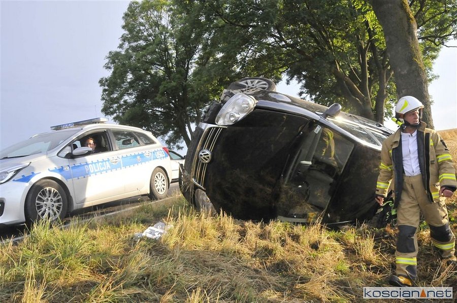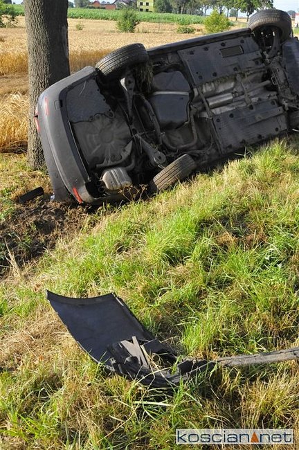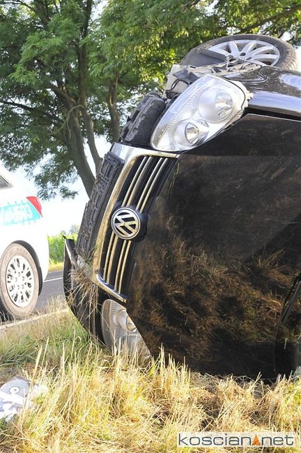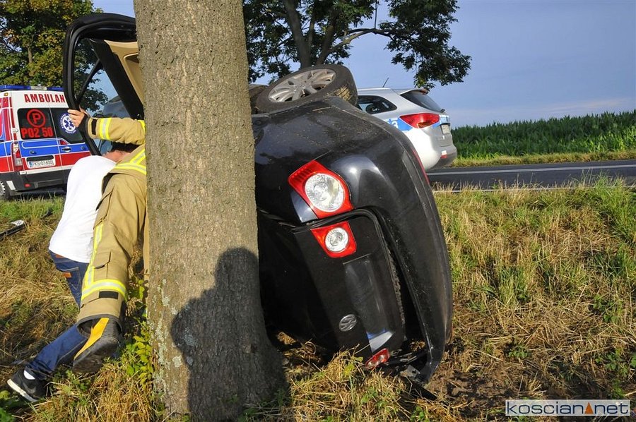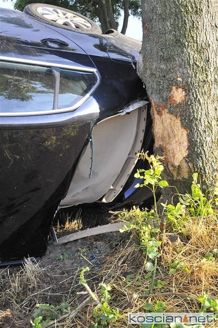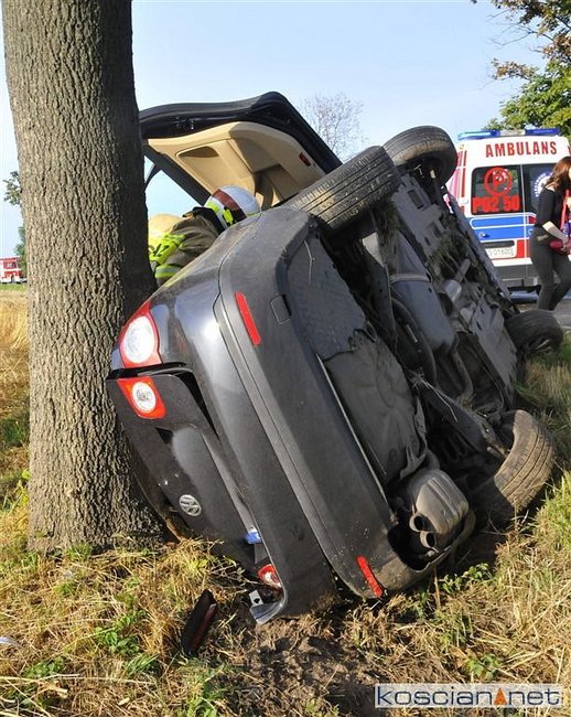 Volkswagen jetta na zakręcie zjechał z drogi, wpadł do rowu i uderzył w drzewo.