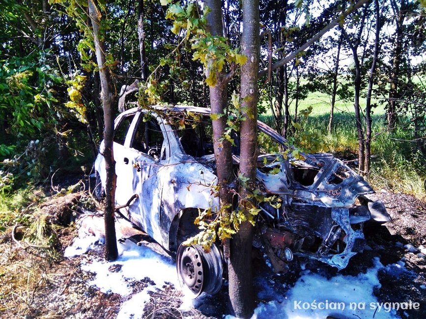 Do zdarzenia doszło dziś (21 maja) około godziny 12.00 na drodze Spytkówki – Darnowo. Kierujący chevroletem aveo mieszkaniec powiatu kościańskiego stracił panowanie nad autem, które zjechało z drogi i uderzyło w drzewo. Chwilę później samochód stanął w płomieniach. Kierowca o własnych siłach opuścił pojazd. Z ogniem walczyli strażacy z PSP Kościan i OSP Racot. Policja ustala okoliczności i przebieg zdarzenia.