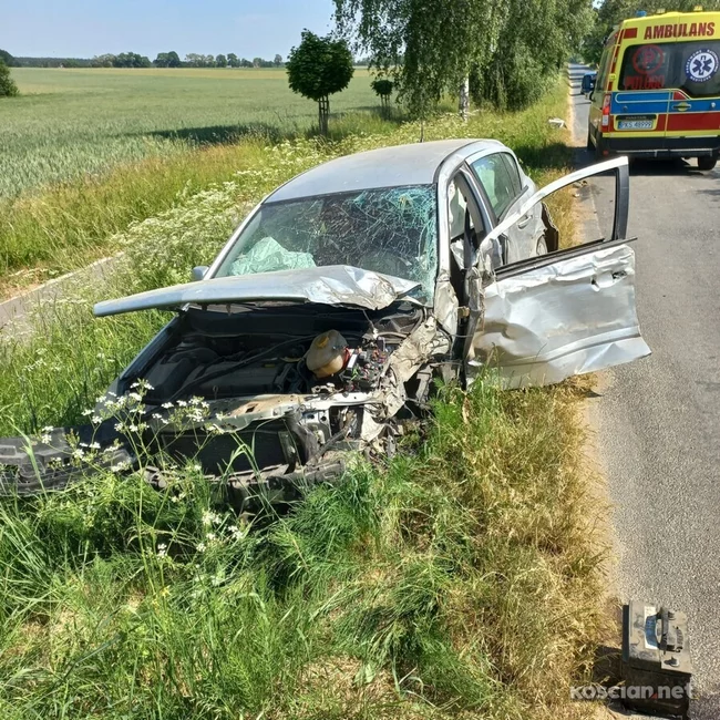 Jadący w kierunku Bieżynia 28-latek z powiatu kościańskiego uderzył w przydrożne drzewo.