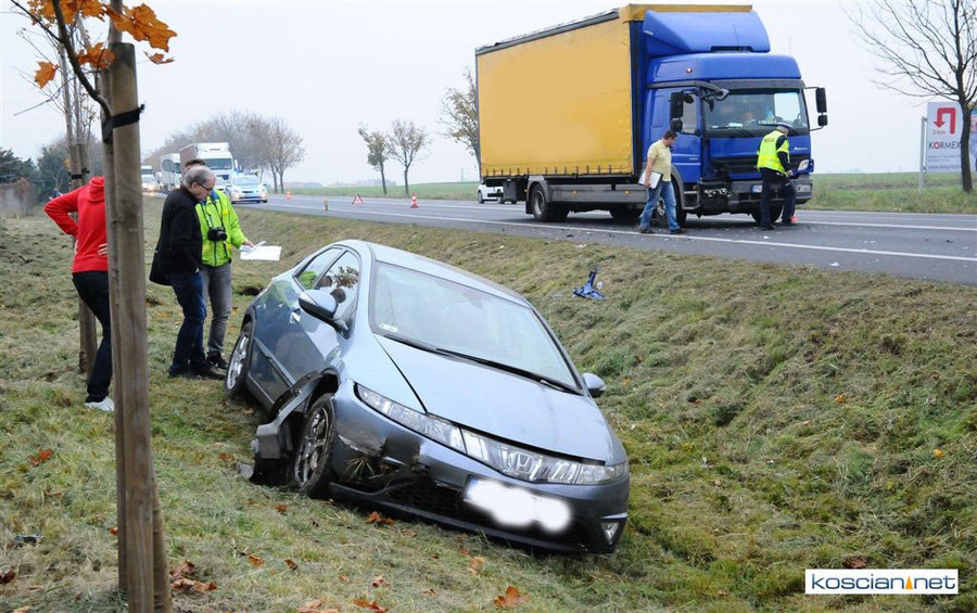 Na obwodnicy Kościana ciężarowy mercedes uderzył w tył osobowej hondy.