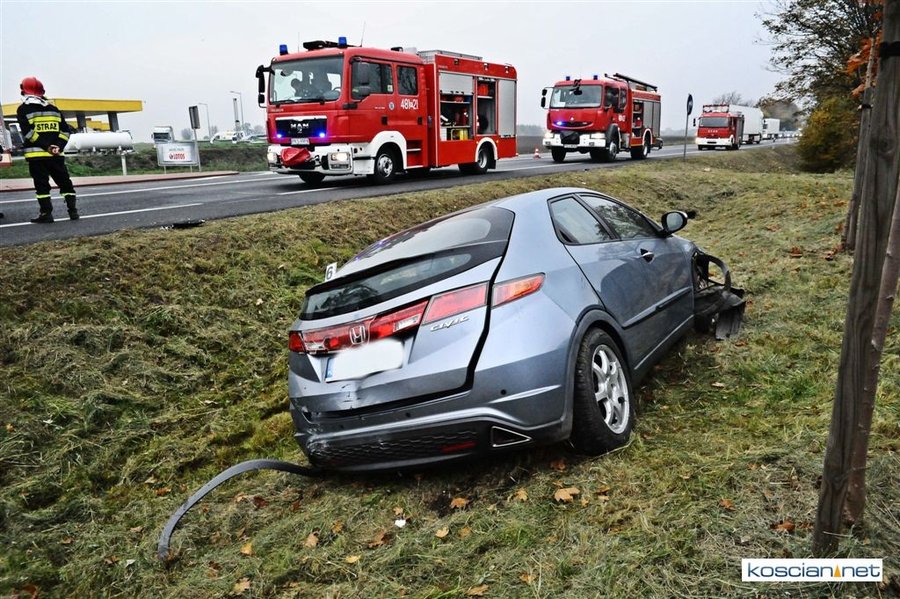 Do kolizji doszło około godziny 16.30 na wysokości stacji paliw. Kierowca ciężarowego mercedesa nie zachował bezpiecznej odległości od poprzedzającej go pojazdu i wjechał w tył osobowej hondy, która po uderzeniu wpadła do przydrożnego rowu.