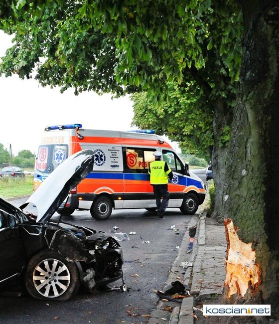 Do kolizji doszło w piątek, około godziny 20., na ulicy Nacławskiej w Kościanie. Kierująca volkswagenem passatem 39-letnia mieszkanka Kościana zjechała na prawo i uderzyła w drzewo. Autem podróżowało także dwuletnie dziecko przewożone w foteliku na przednim siedzeniu. Nikt z uczestników kolizji nie odniósł poważniejszych obrażeń. Kierującą ukarano mandatem.