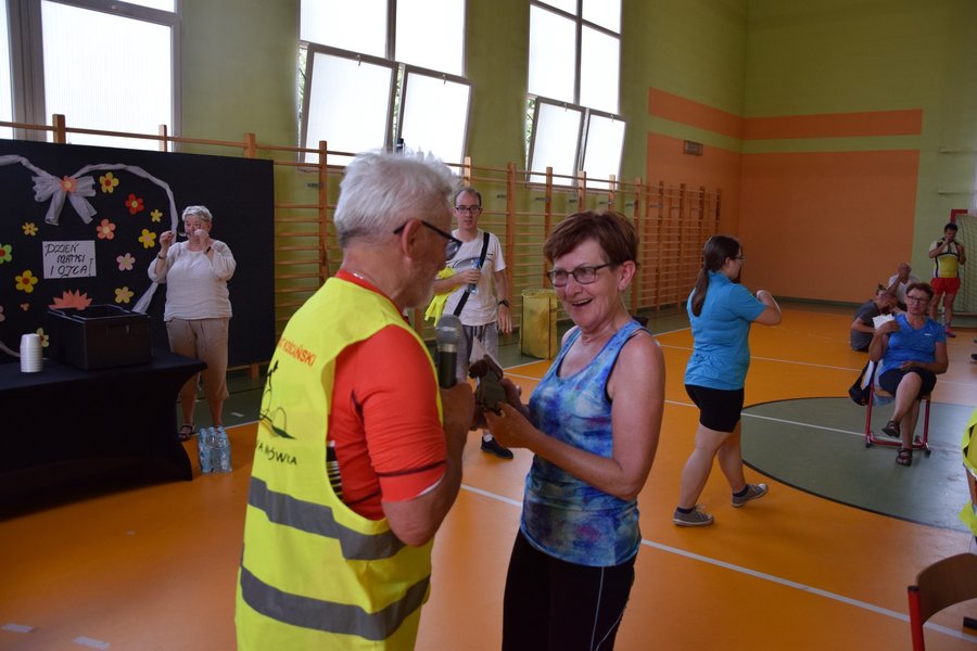 Zapisani na rajd rowerzyści otrzymali nagrody oraz gadżet promocyjny. Były to odblaskowe koszulki z nadrukowanym logo przygotowanym na obchodzoną w tym roku przez Powiat Kościański 100-rocznicę powstania polskiej administracji powiatowej.