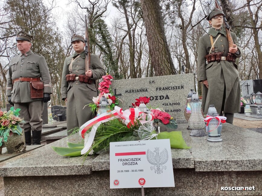 Powstaniec Franciszek Drozda z Armią Wielkopolską przeszedł cały szlak bojowy. Brał udział w wyprawie kijowskiej, bitwie warszawskiej i kontrofensywie z sierpnia 1920 roku. Ostatnie lata życia spędził w Kiełczewie, a pochowany jest na cmentarzu komunalnym w Kościanie. Od 11 marca jego grób oznaczony okolicznościową tablicą. Społecznicy i samorządowcy przypominają w ten sposób o historii i jej bohaterach. Takie tabliczki ustawiane są na cmentarzach miasta i gminy Kościan od dekady.