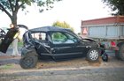 Siła uderzenia spowodowała, że renault został wepchnięty pod stojącą przed nim przyczepę załączoną do ciągnika rolniczego.