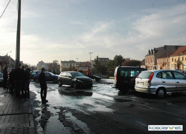 Sześć pojazdów uszkodził kierujący oplem omega mieszkaniec gminy Czempiń, który podczas wyprzedzania na czempińskim Rynku wpadł w poślizg.