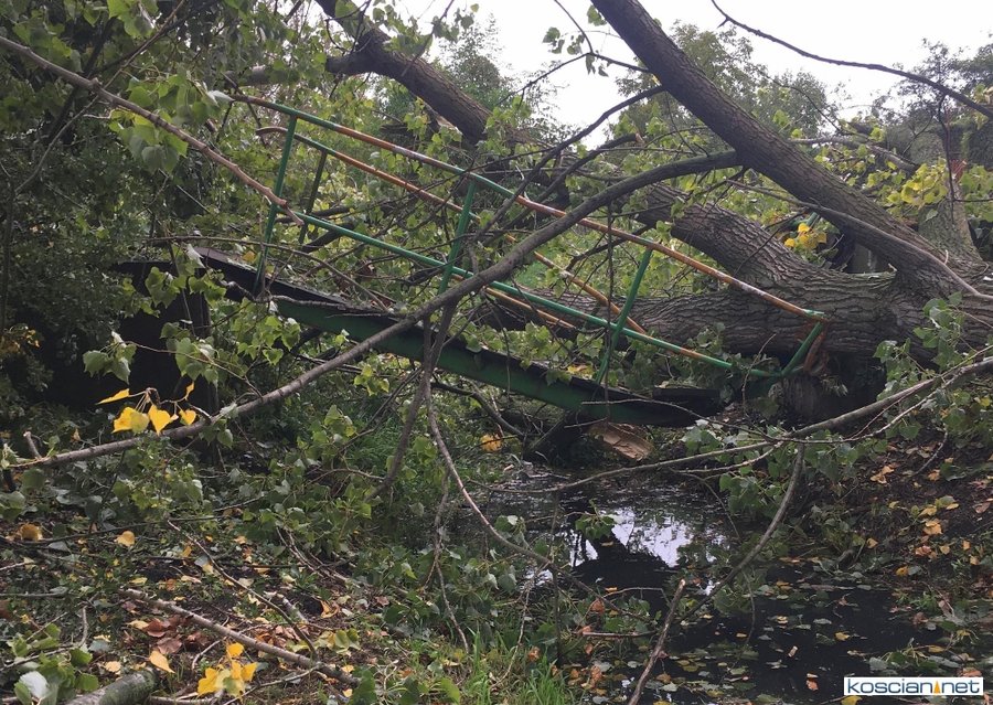 Powalone przez wiatr drzewo zniszczyło mostek przy ulicy Torowej w Kościanie.