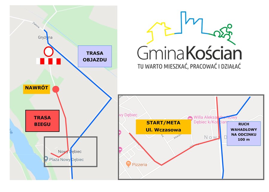 - w godzinach 10.45 - 13.13 zamknięty zostanie odcinek drogi powiatowej Gryżyna - Nowy Dębiec.