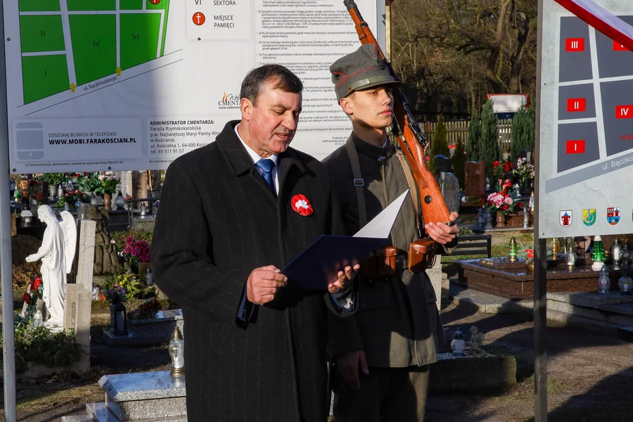 Po złożeniu przez delegacje kwiatów pod pomnikiem Powstańców Wielkopolskich uroczystości przeniosły się na stary cmentarz parafialny przy ulicy Bączkowskiego, gdzie odsłonięto plan cmentarza z zaznaczonymi mogiłami Powstańców Wielkopolskich. To trzecia taka tablica powstała z inicjatywy Stowarzyszenia im. Kościańskiej Rezerwy Skautowej. Postawienie tablic na wszystkich kościańskich cmentarzach sfinansowały samorządy miasta, gminy i powiatu.