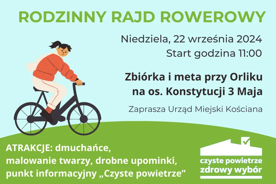 W najbliższą niedzielę przypada światowy dzień bez samochodu. Z tej okazji kościański magistrat przygotował rodzinny rajd rowerowy.