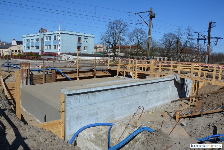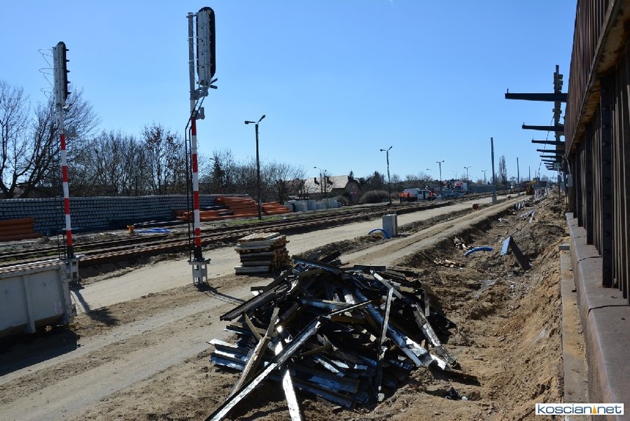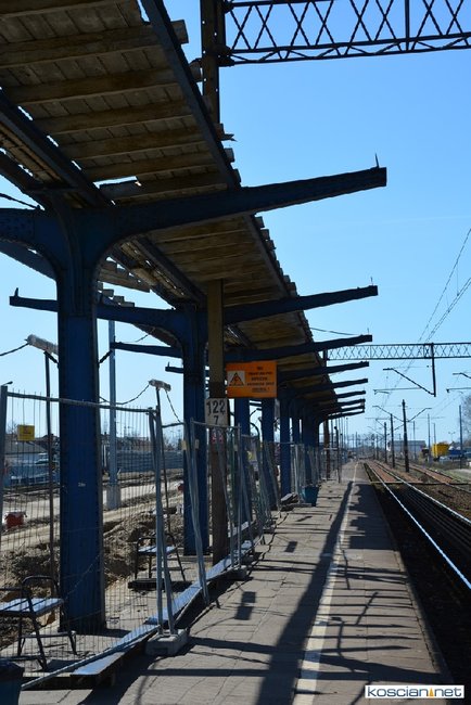 Na stacji w Kościanie trwają roboty torowe i budowa peronów. Prace na stacji rozpoczęły się z opóźnieniem. Wykonawca inwestycji czekał na decyzję w sprawie zabytkowej wiaty stojącej na peronie. Obecnie trwa jej rozbiórka. Konserwator zabytków zgodził się na jej przeniesienie w pobliże wieży i planowanego parkingu przy dworcu. Obiekt jest rozbierany. Poszycie nie nadaje się już do użytku. Wartość konserwatorską ma sama konstrukcja.