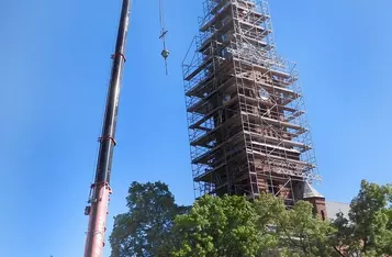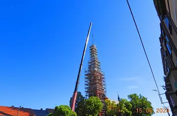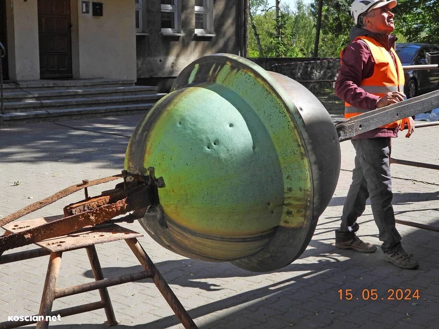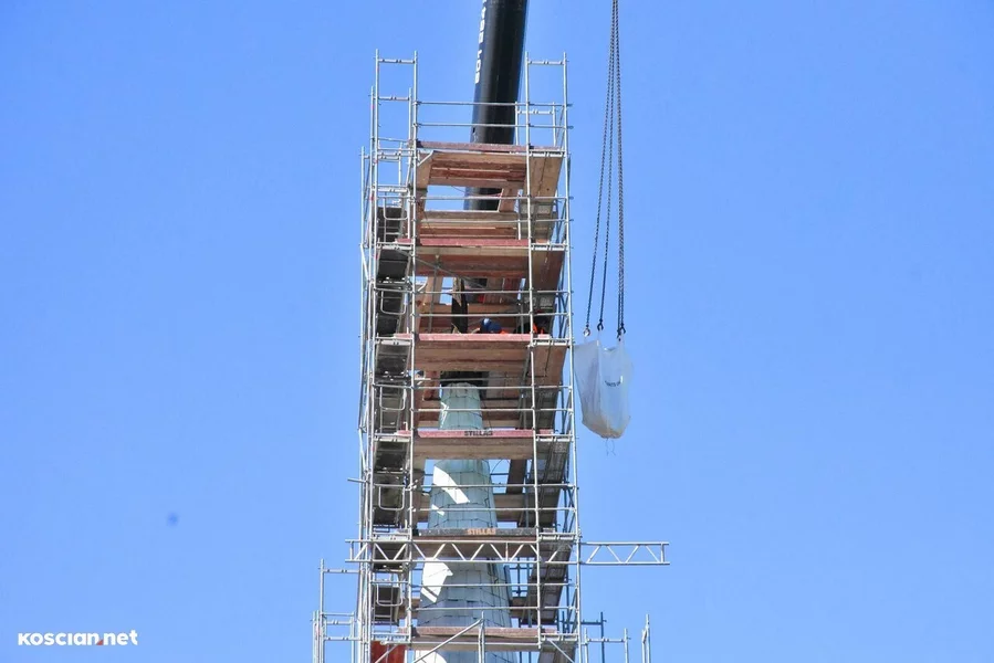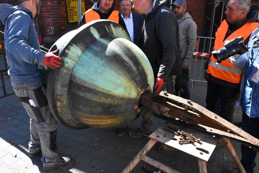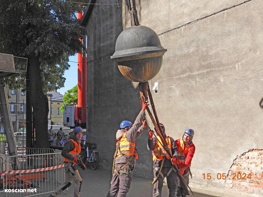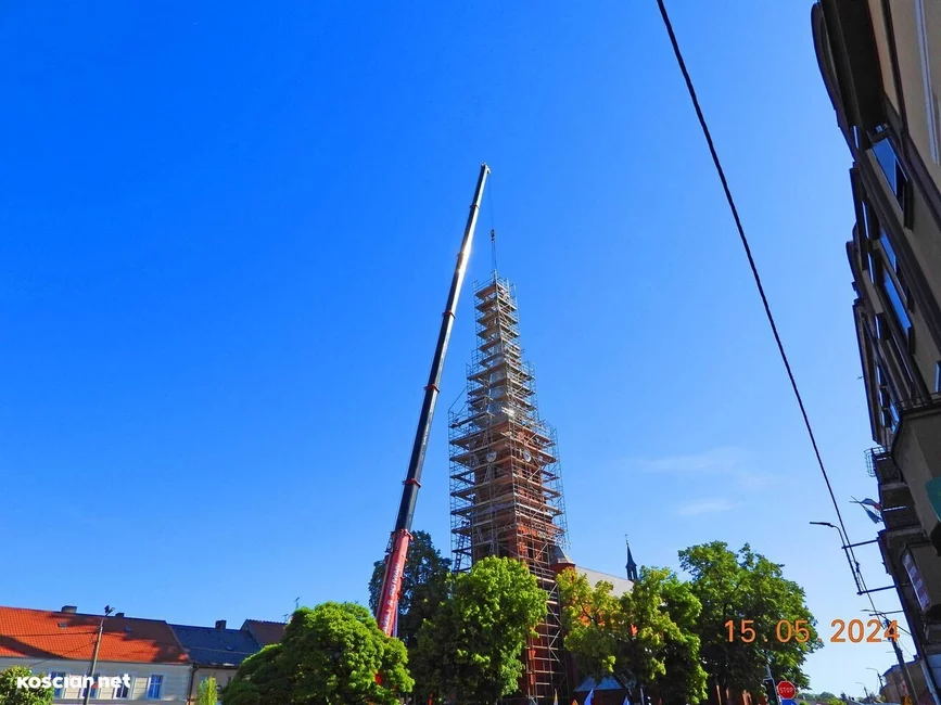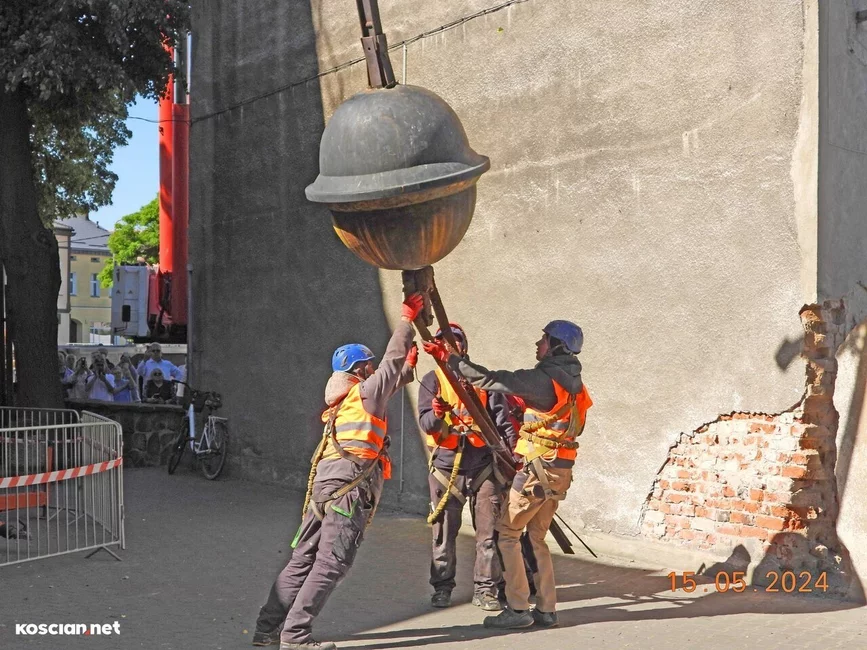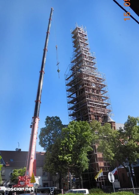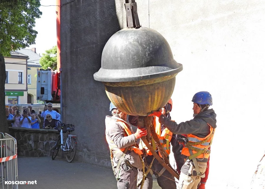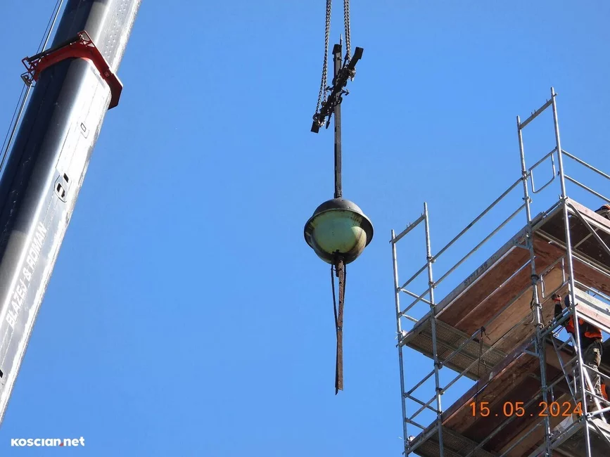 Trwa remont 62-metrowej wieży kościoła pw. św. Michała Archanioła w Czempiniu. Z jej zwieńczenia zdemontowano krzyż posadowiony w tym miejscu 127 lat temu. Krzyż wraz z zespoloną z nim kulą waży ponad 200 kilogramów.