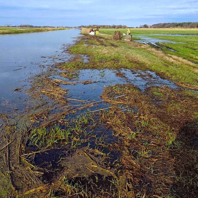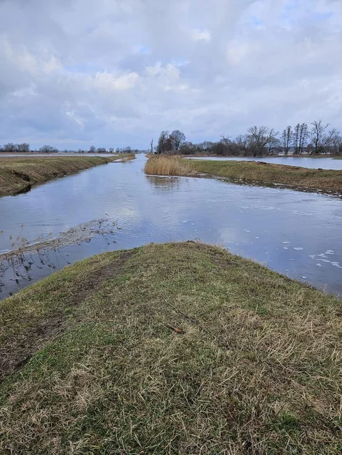 18 lutego 2024W okolicy Gryżyny uzupełniono wyrwy w wałach przeciwpowodziowych