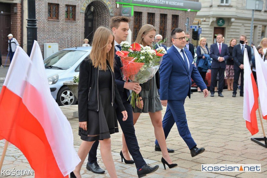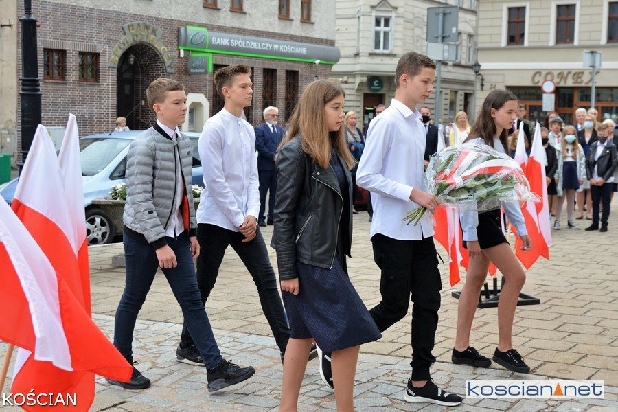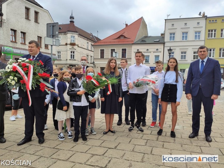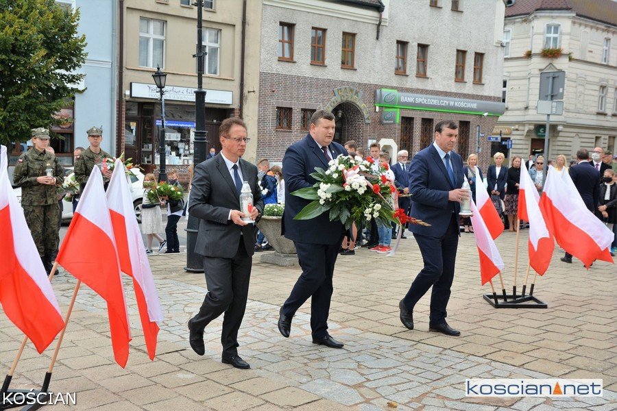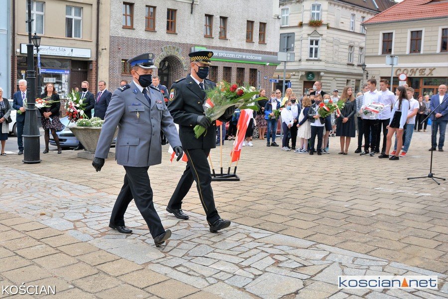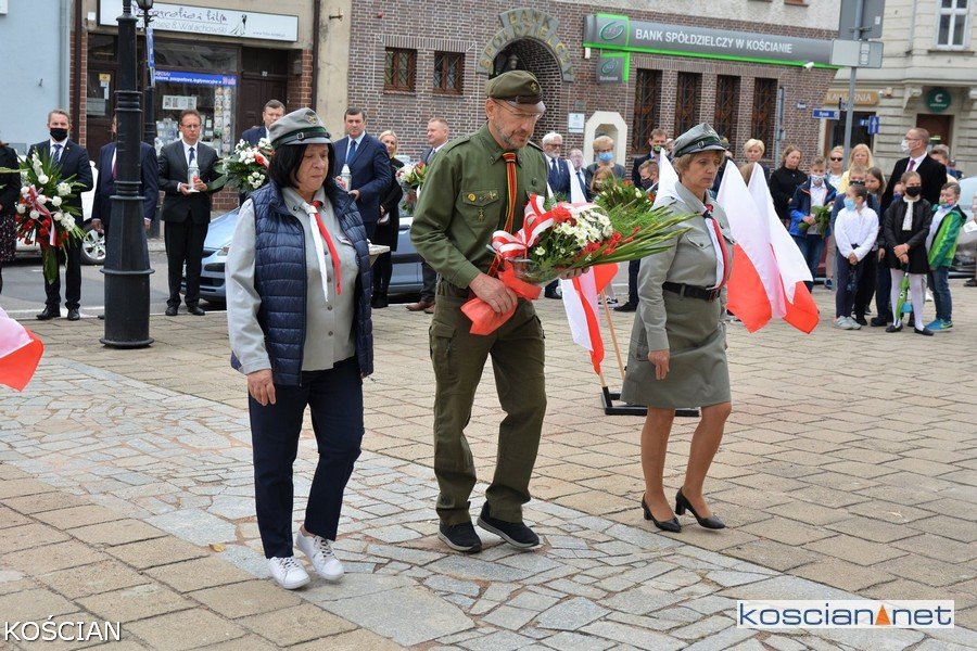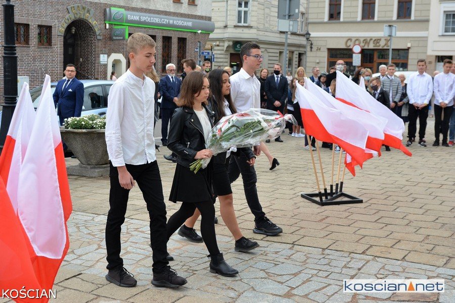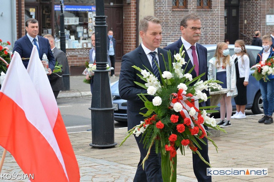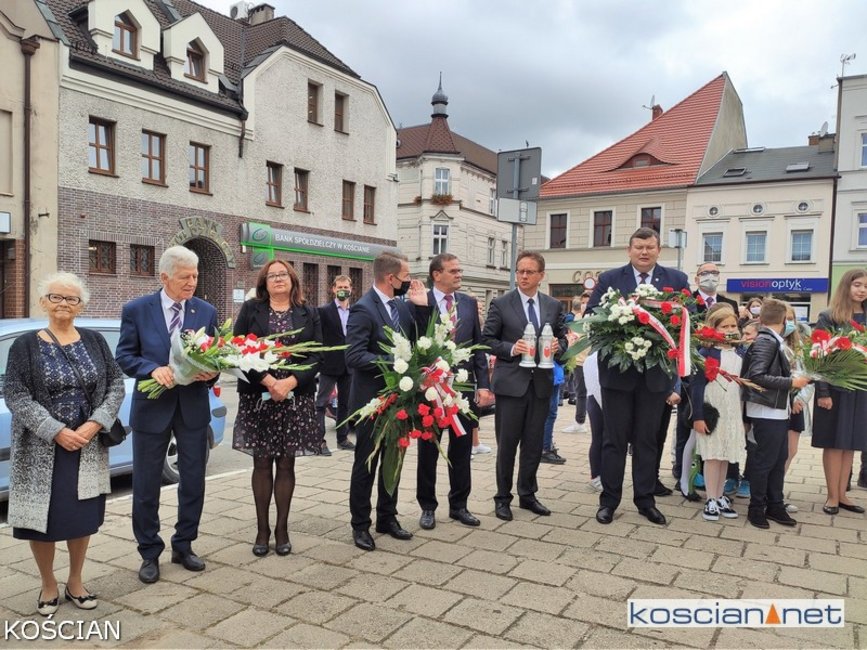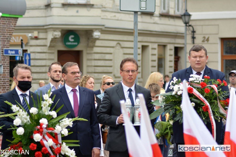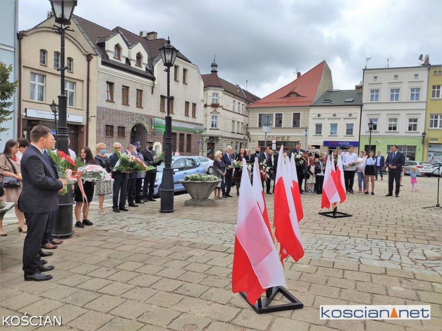 W południe na kościańskim Rynku wiązanki kwiatów pod tablicami pamięci pomordowanych mieszkańców Kościana i Ziemi Kościańskiej złożyły władze samorządowe, kombatanci, harcerze, przedstawiciele partii politycznych, stowarzyszeń, instytucji oraz młodzież szkolna.