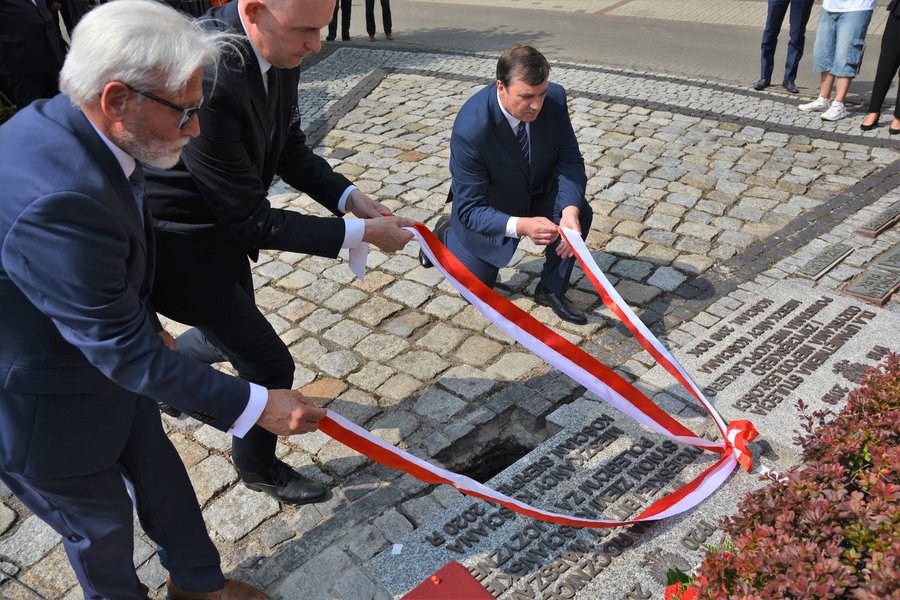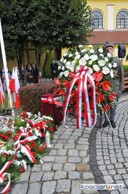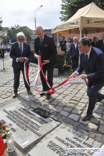 Na Placu Niezłomnych w Kościanie odsłonięto tablicę pamiątkową oraz złożono urnę z ziemią z pola bitwy z Ossowa.