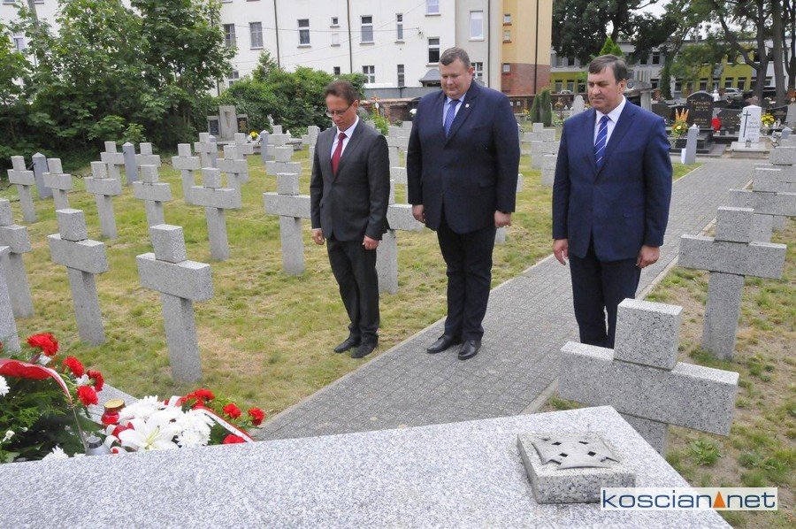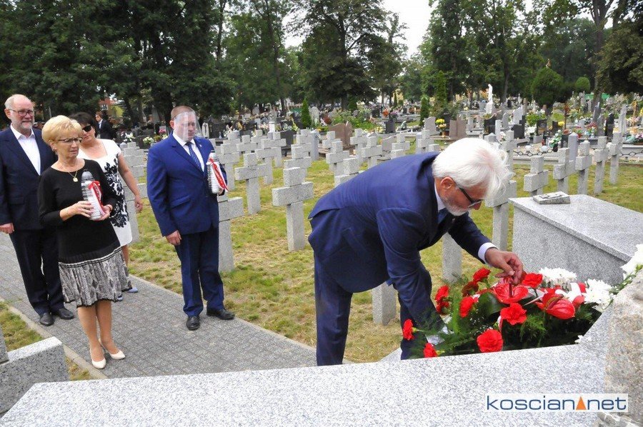 Po uroczystościach na Placu Niezłomnych Burmistrz Piotr Ruszkiewicz wraz z Zastępcą Przemysławem Korbikiem oraz Przewodniczącym Rady Miejskiej Kościana Dawidem Olejniczakiem, złożyli wiązankę kwiatów pod Pomnikiem Obrońców Ojczyzny na starym cmentarzu parafialnym.