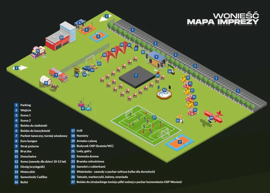 Po części oficjalnej, na boisku sportowym odbędzie się festyn z licznymi atrakcjami dla całych rodzin. Początek o godzinie 14:30. Na wieczór zaplanowano zabawę taneczną.