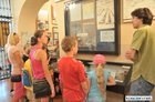 Fotoreporter spotkał wycieczkę z Gorzyczek (gm. Czempiń), która w ramach "Wakacji na sportowo" poznawała między innymi sportową przeszłość i teraźniejszość stolicy powiatu. Dzieci zwiedziły muzeum, wspięły się na górę Ferfeta, obejrzały Łazienki i grały w piłkę na miejskim stadionie.