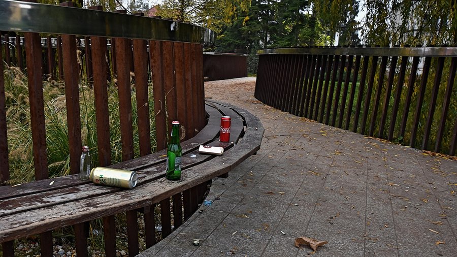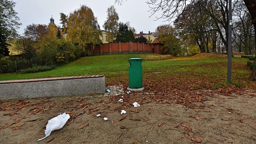Wyrwane stojaki na rowery, zniszczona roślinność, porozrzucane śmieci…
