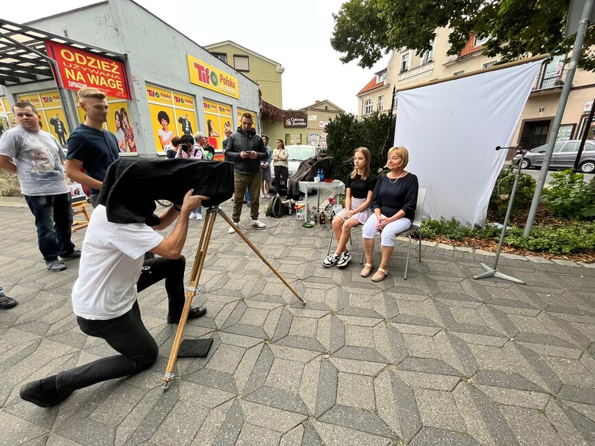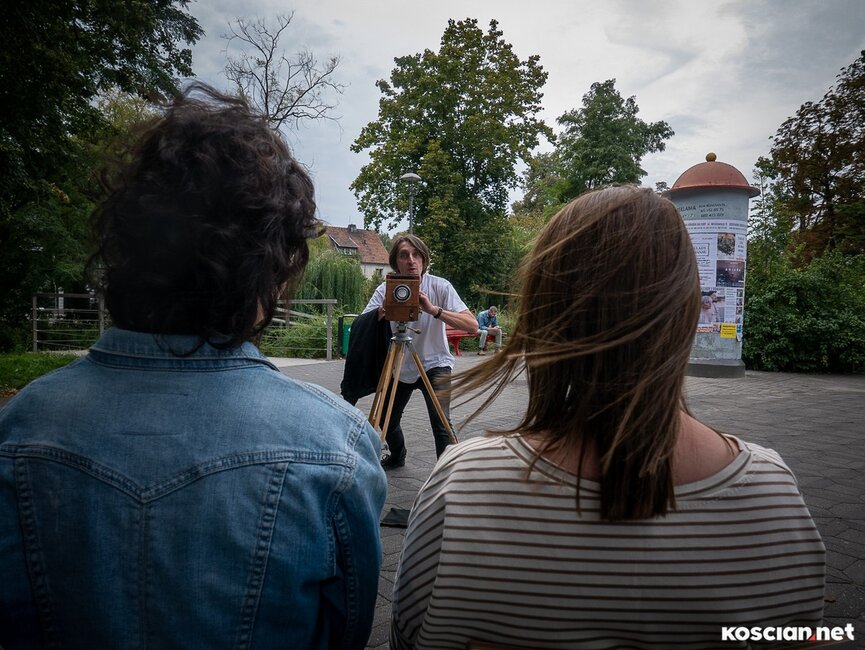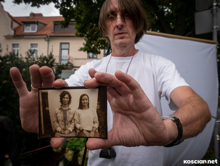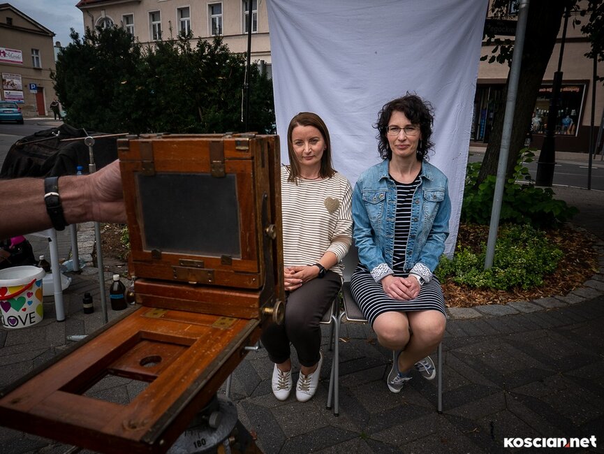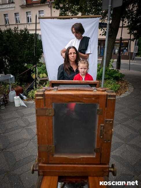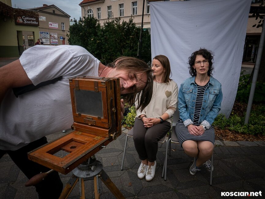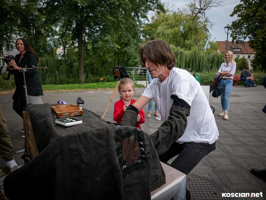 Nie brakowało chętnych do pozowania wędrownemu fotografowi, który rozstawił swój warsztat przed kościańską biblioteką.