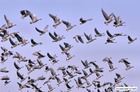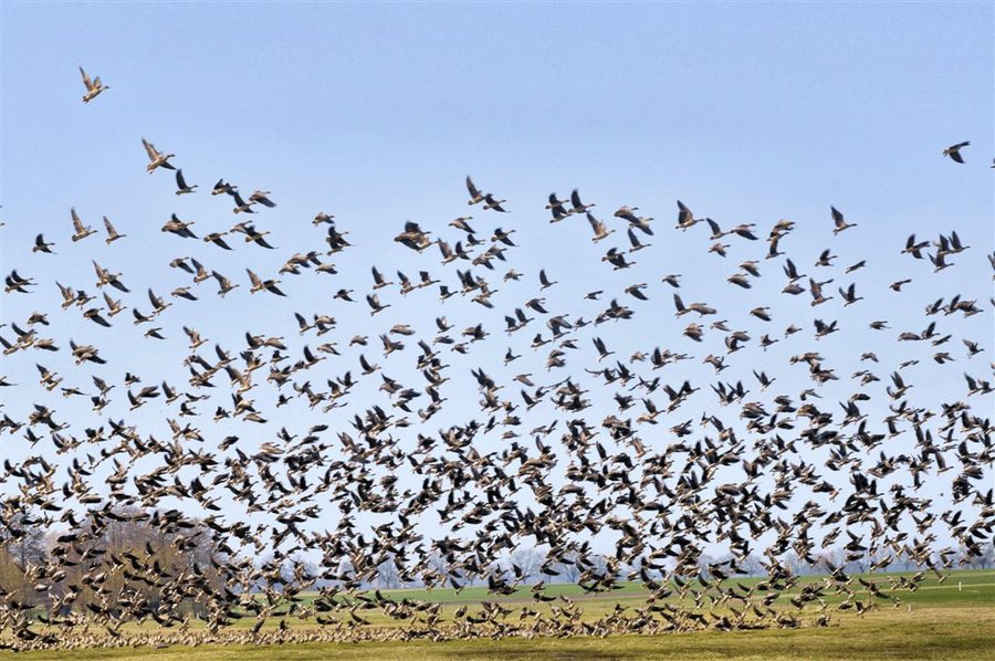Z północy przylatują głównie gęsi białoczelne zwane białoczółkami i gęsi zbożowe zwane posiewnicami ponieważ przylatują po siewach. Wśród nich można zobaczyć również bernikle kanadyjskie dawniej ptak spotykany bardzo rzadko a obecnie uważany za jeden z najbardziej inwazyjnych gatunków w Europie. Ptaki te jesienią wędrują na południe. Wiosną powrócą na swoje miejsca gniazdowania.