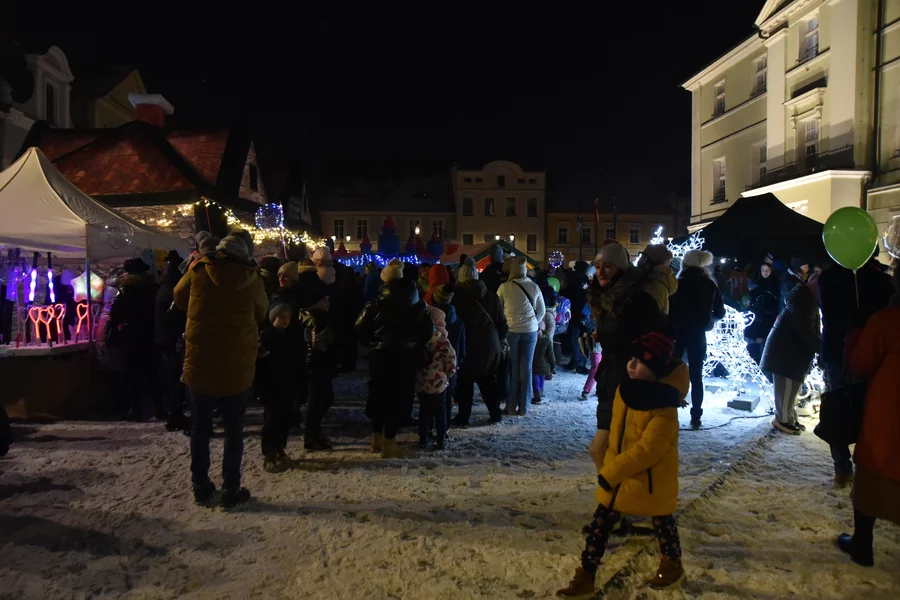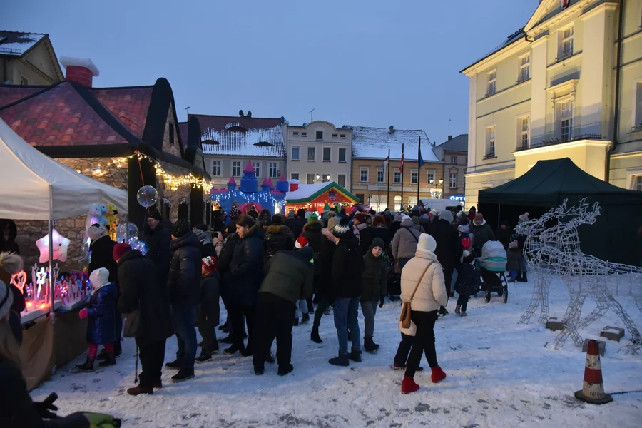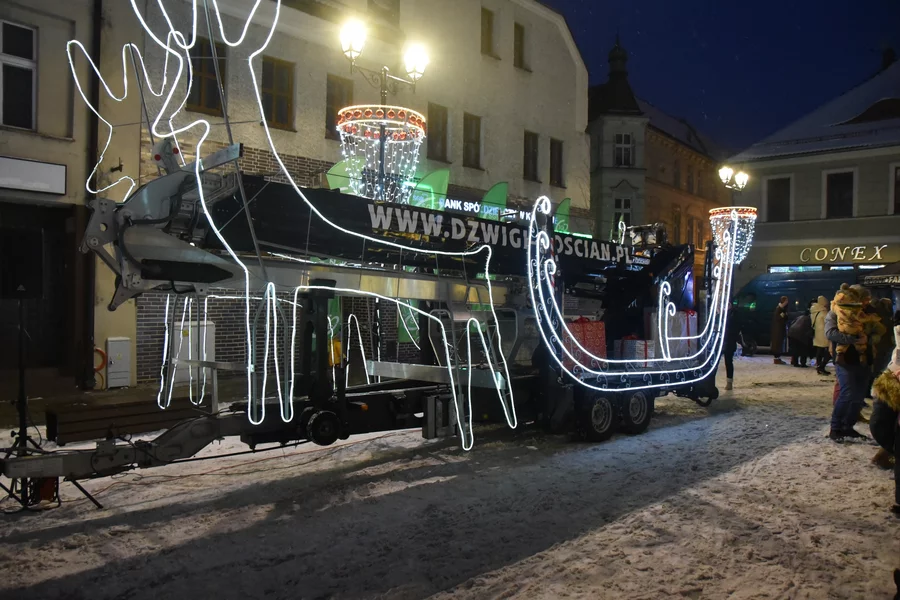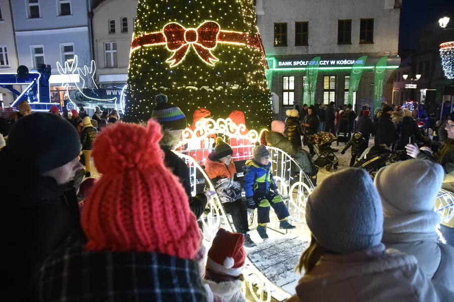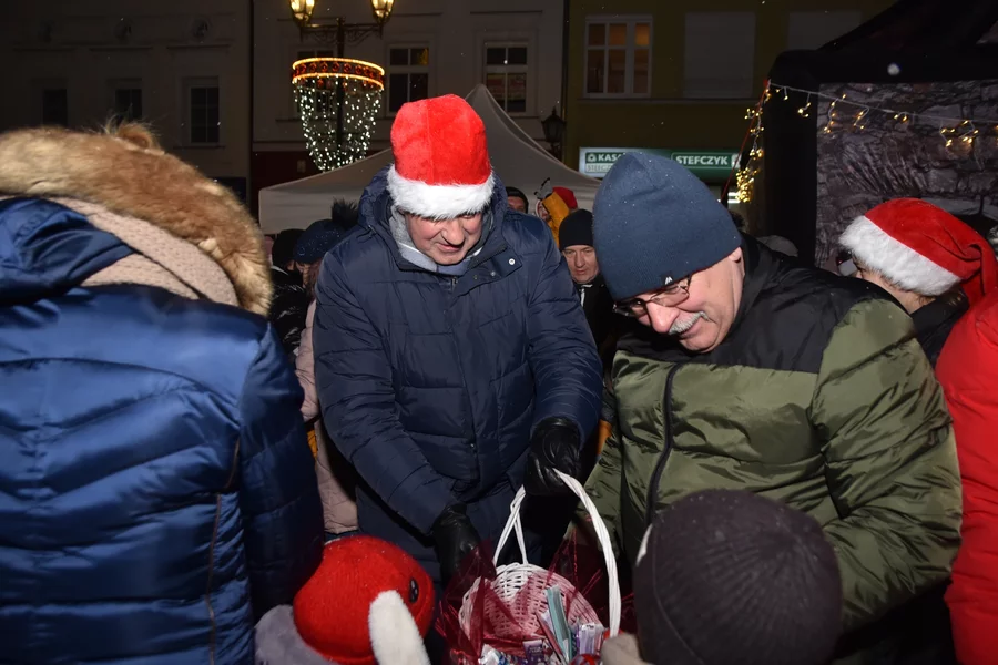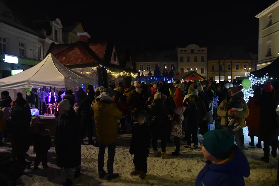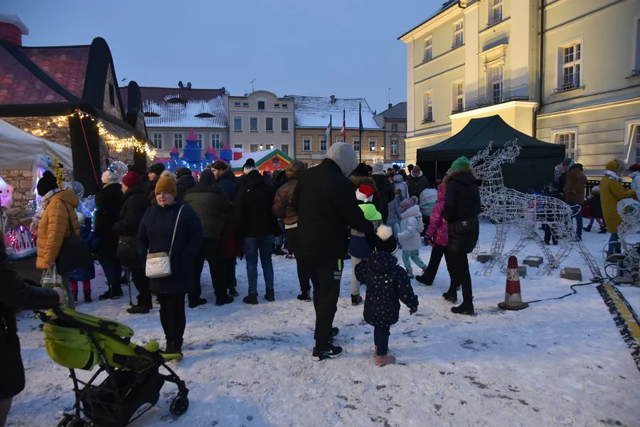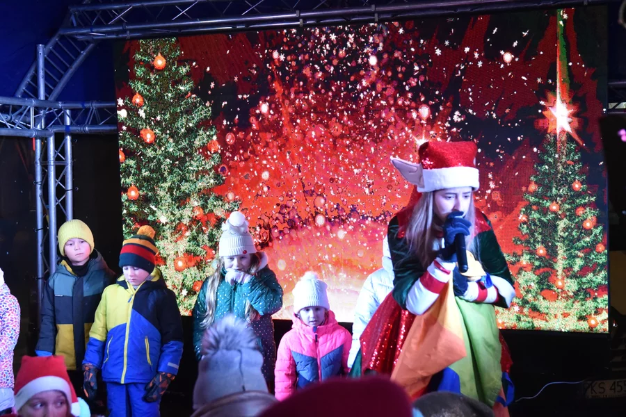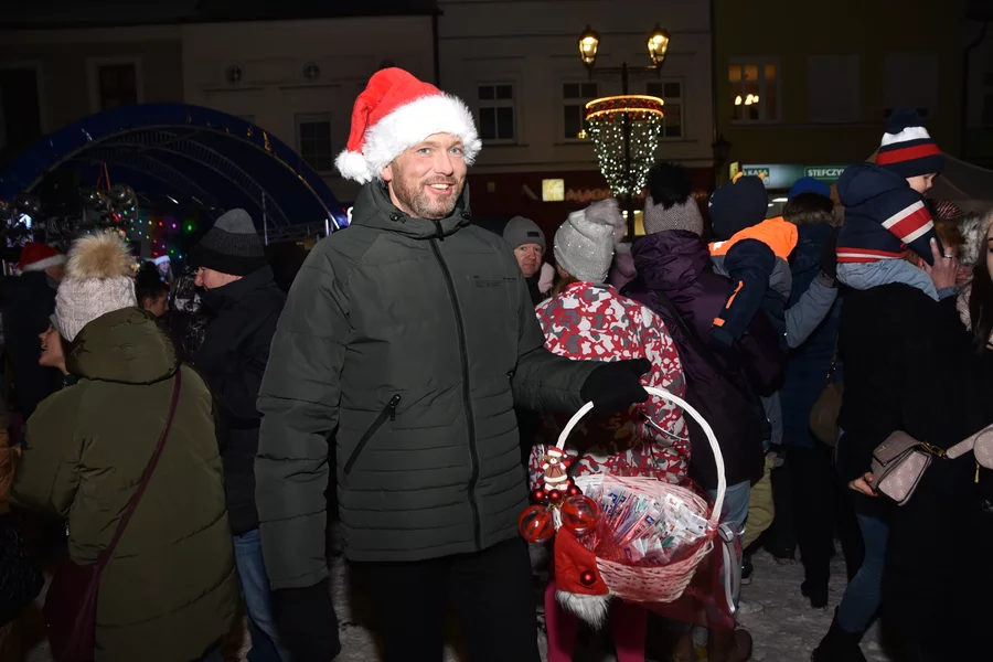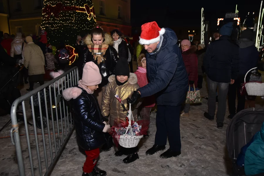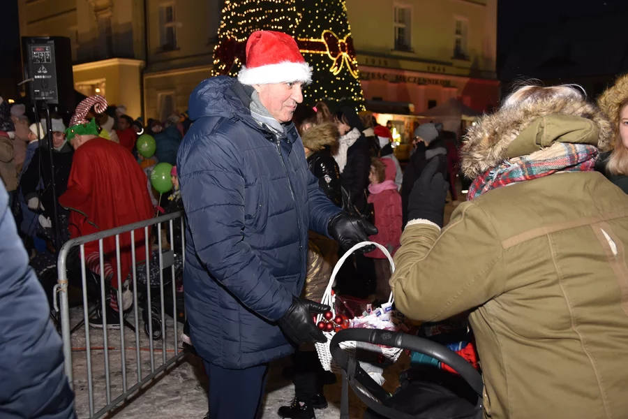 Mikołajkową imprezę rozpoczęły życzenia złożone dzieciom i dorosłym przez burmistrza Piotra Ruszkiewicza i przewodniczącego miejskiej rady Dawida Olejniczaka, po których uroczyście rozświetlono miejską choinkę i sanie zaprzężone w renifery.