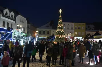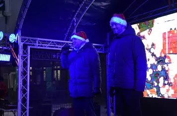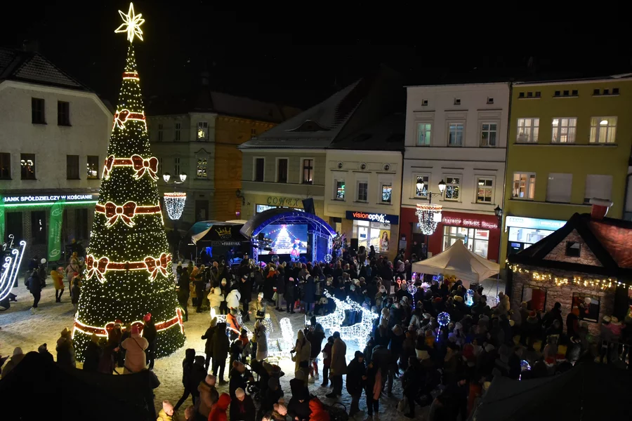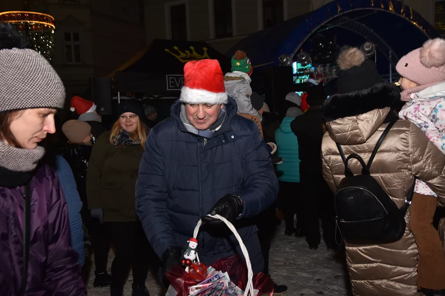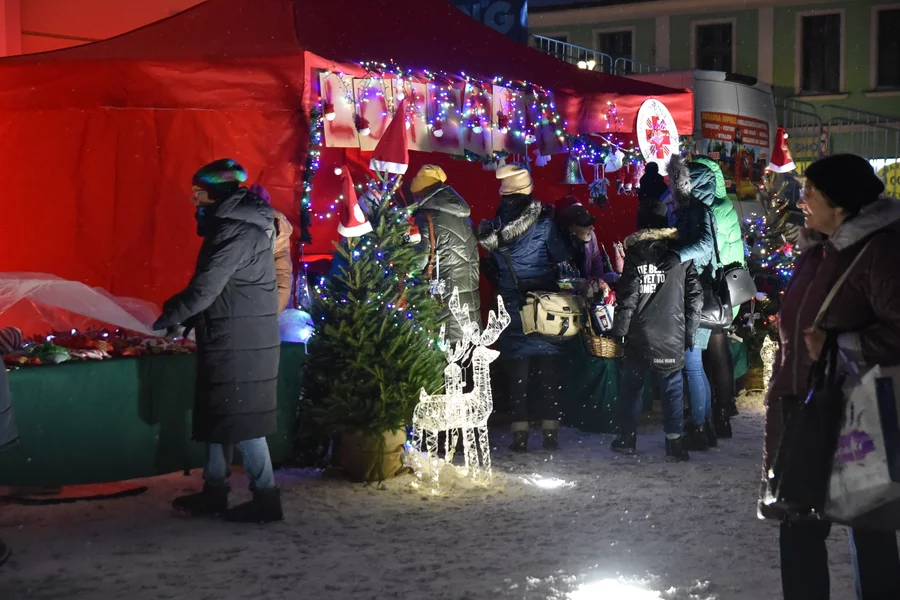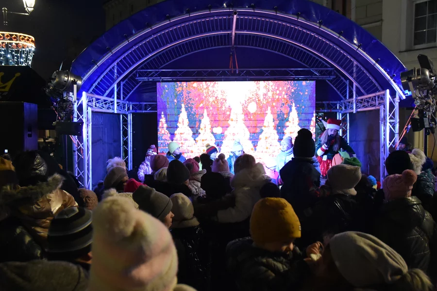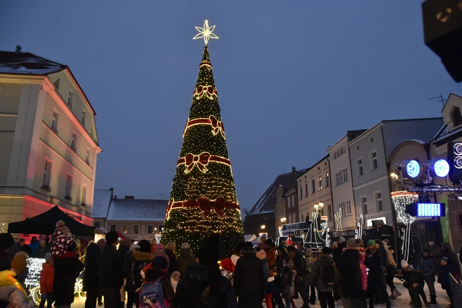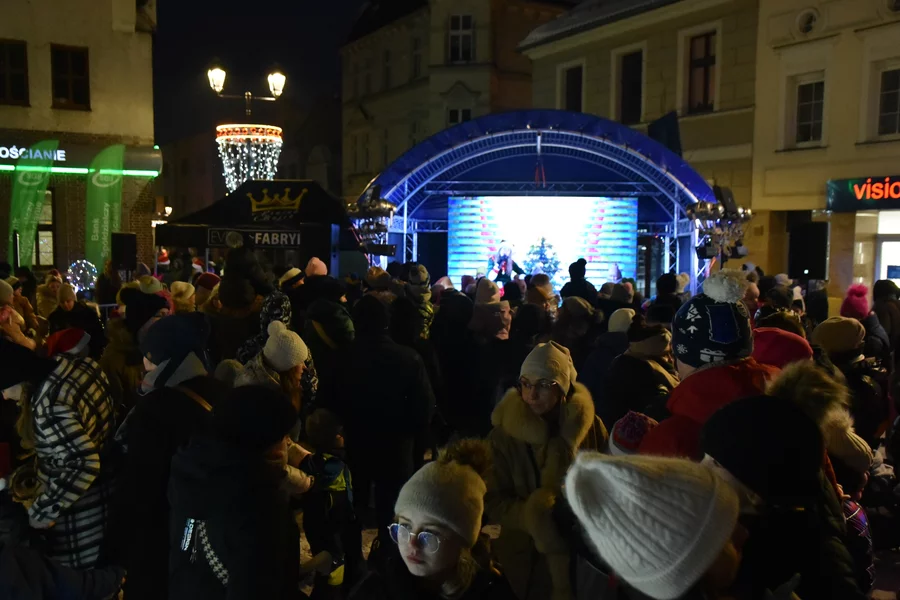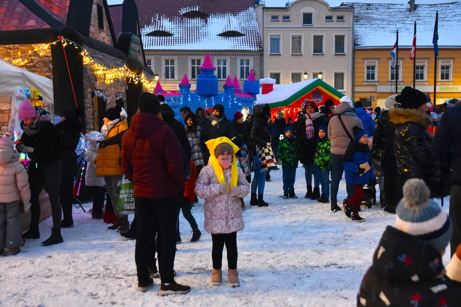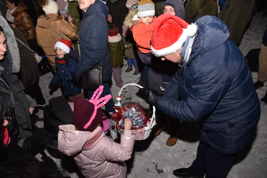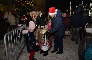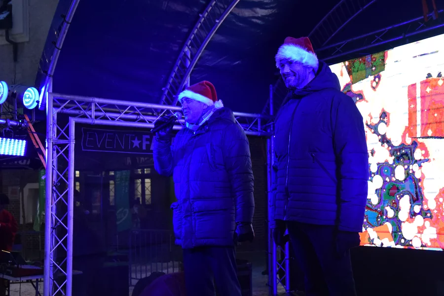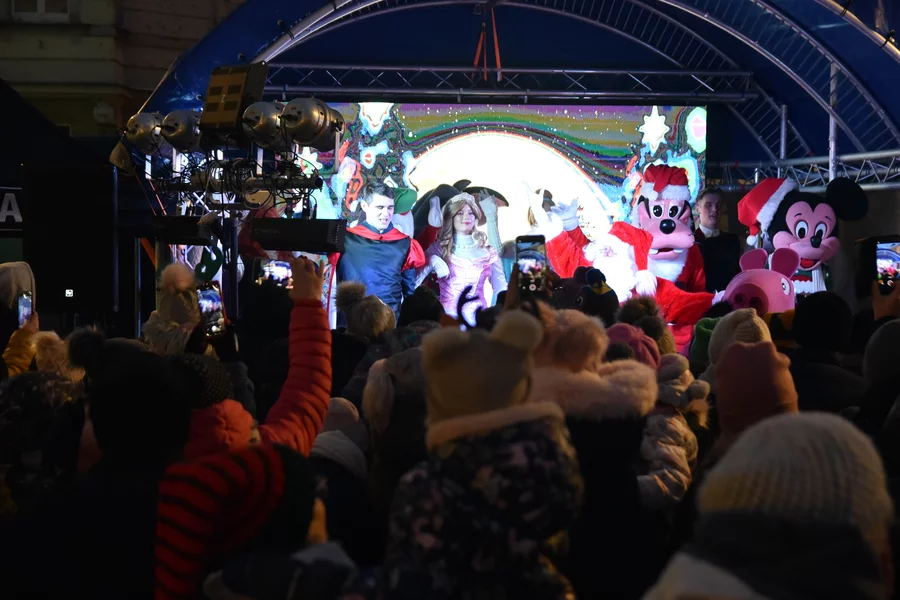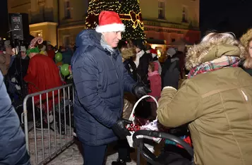 Mikołajkową imprezę rozpoczęły życzenia złożone dzieciom i dorosłym przez burmistrza Piotra Ruszkiewicza i przewodniczącego miejskiej rady Dawida Olejniczaka, po których uroczyście rozświetlono miejską choinkę i sanie zaprzężone w renifery.