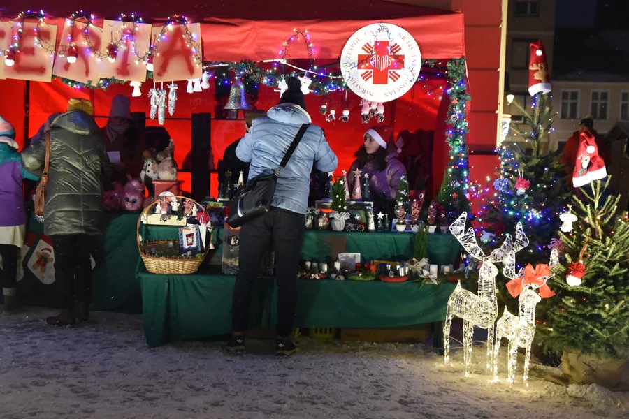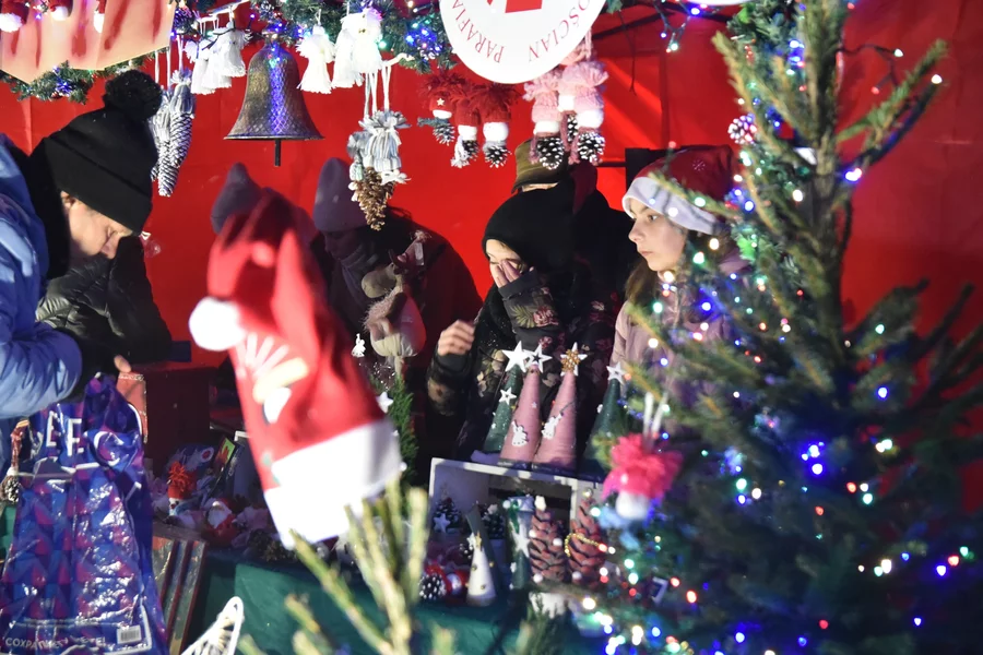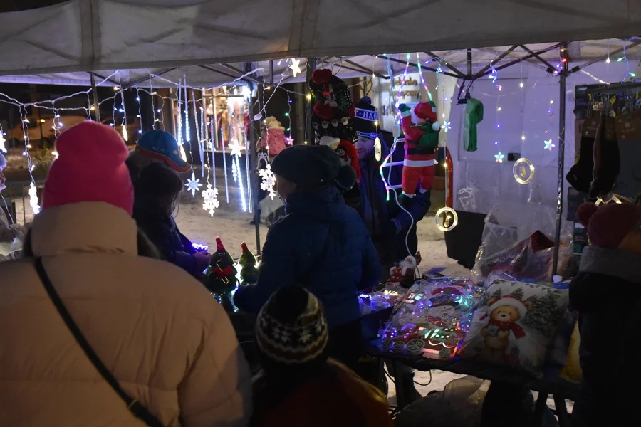 Na straganach można było kupić świąteczne ozdoby, czapki, szaliki i skarpetki, migocące kolorami balony. W strefie gastronomicznej oferowano słodkie i słone przekąski, a na dorosłych czekało aromatyczne grzane wino.