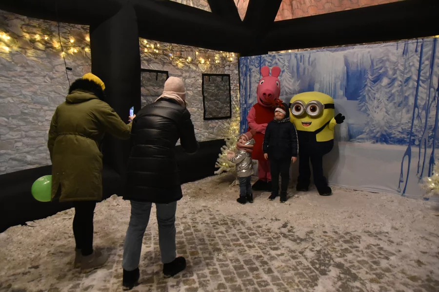 Dzieci ustawiały się w długie kolejki by spotkać się ze Świętym Mikołajem i zrobić sobie z nim pamiątkowe zdjęcie. Równie tłoczno było w namiotach, w których do zdjęć z dziećmi pozowały postacie ze znanych bajek. Powodzeniem cieszyła się także zjeżdżalnia ustawiona przy ratuszu. Całymi rodzinami fotografowano się przy choince i świątecznie udekorowanych dźwigach.